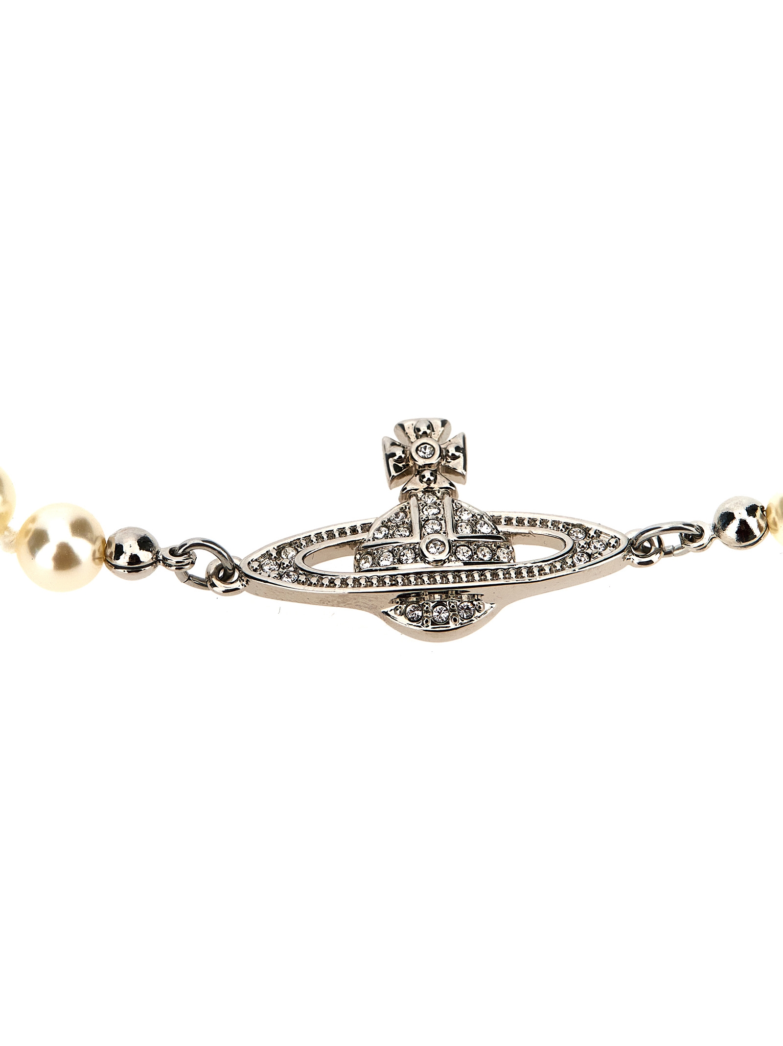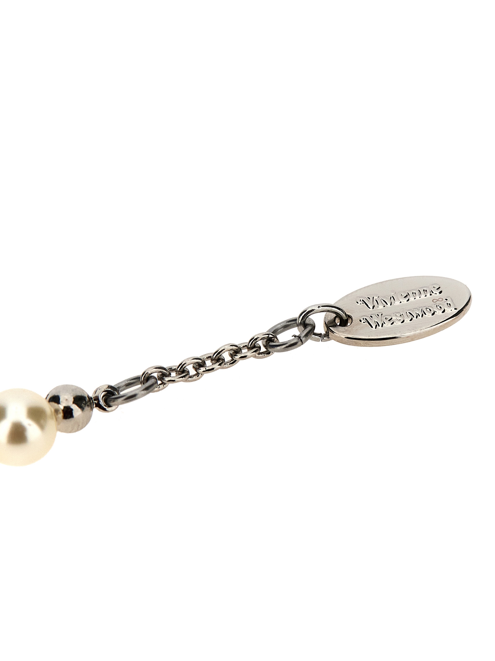 ‘Mini Bas Relief’ bracelet with pearls and crystal logo, engraved lobster clasp and extendable chain.