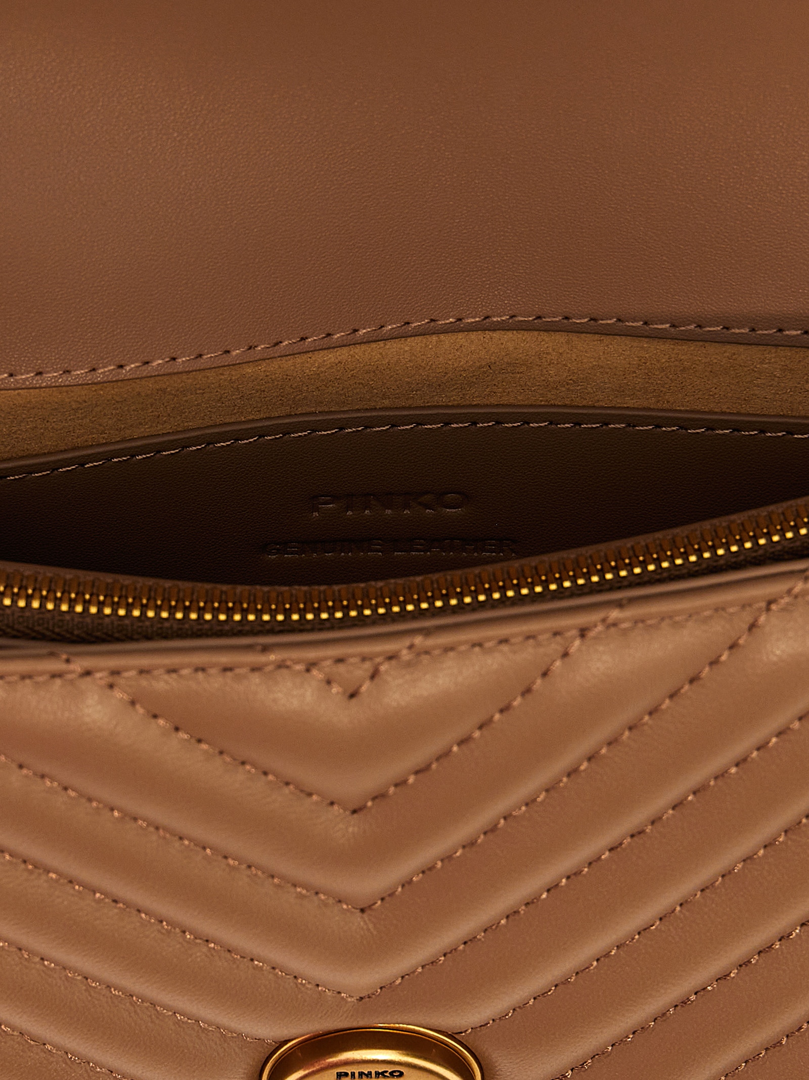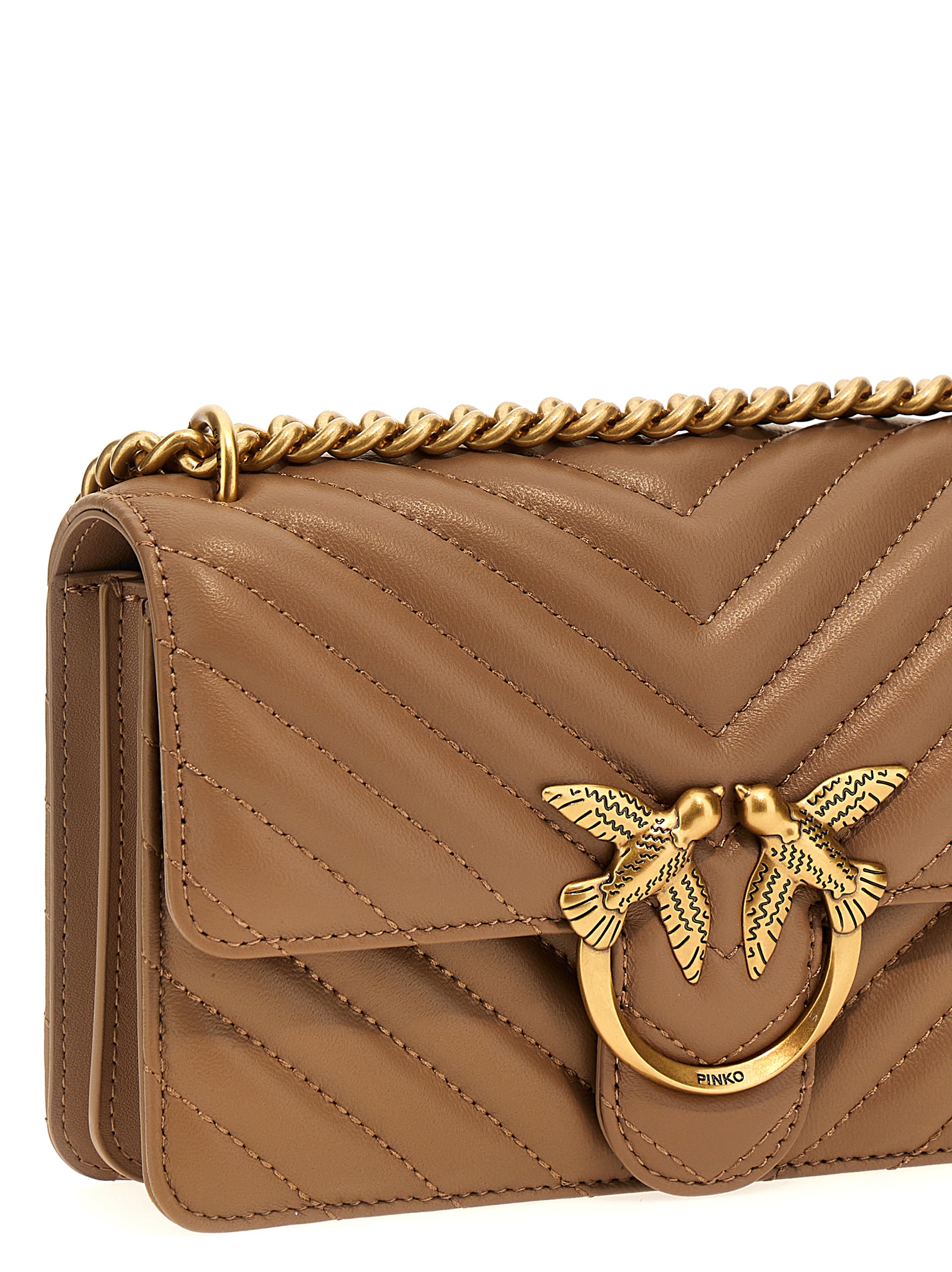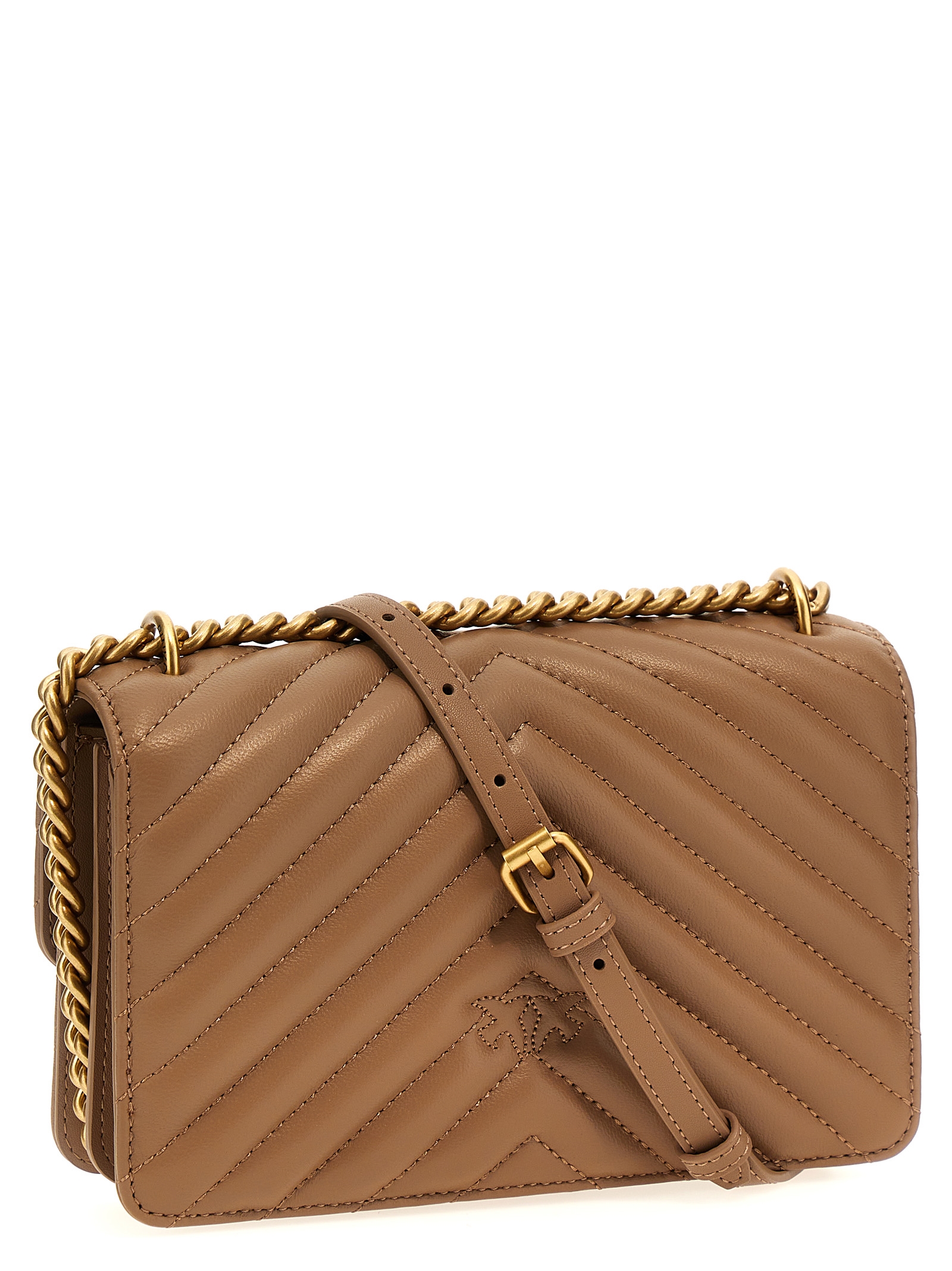 ‘Mini Love Bag One’ chevron quilted nappa leather crossbody bag, metal logo detail closure, chain and leather shoulder strap.