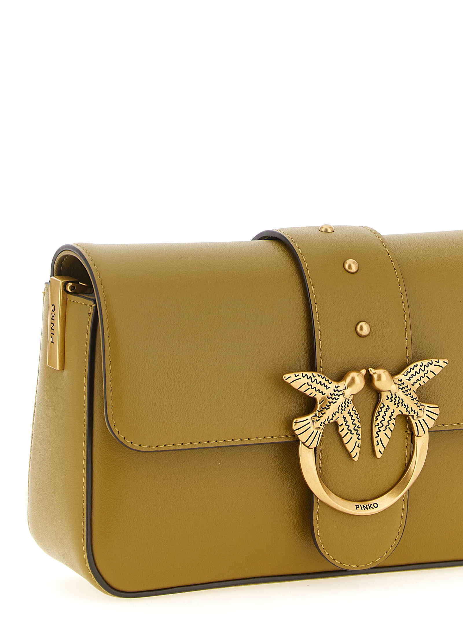 ‘Mini Love Slouchy’ leather shoulder bag, magnetic flap closure with studs and antiqued metal ‘Love Birds Diamond Cut’ buckle on the front, cotton drill fabric lining, double adjustable and removable shoulder strap.