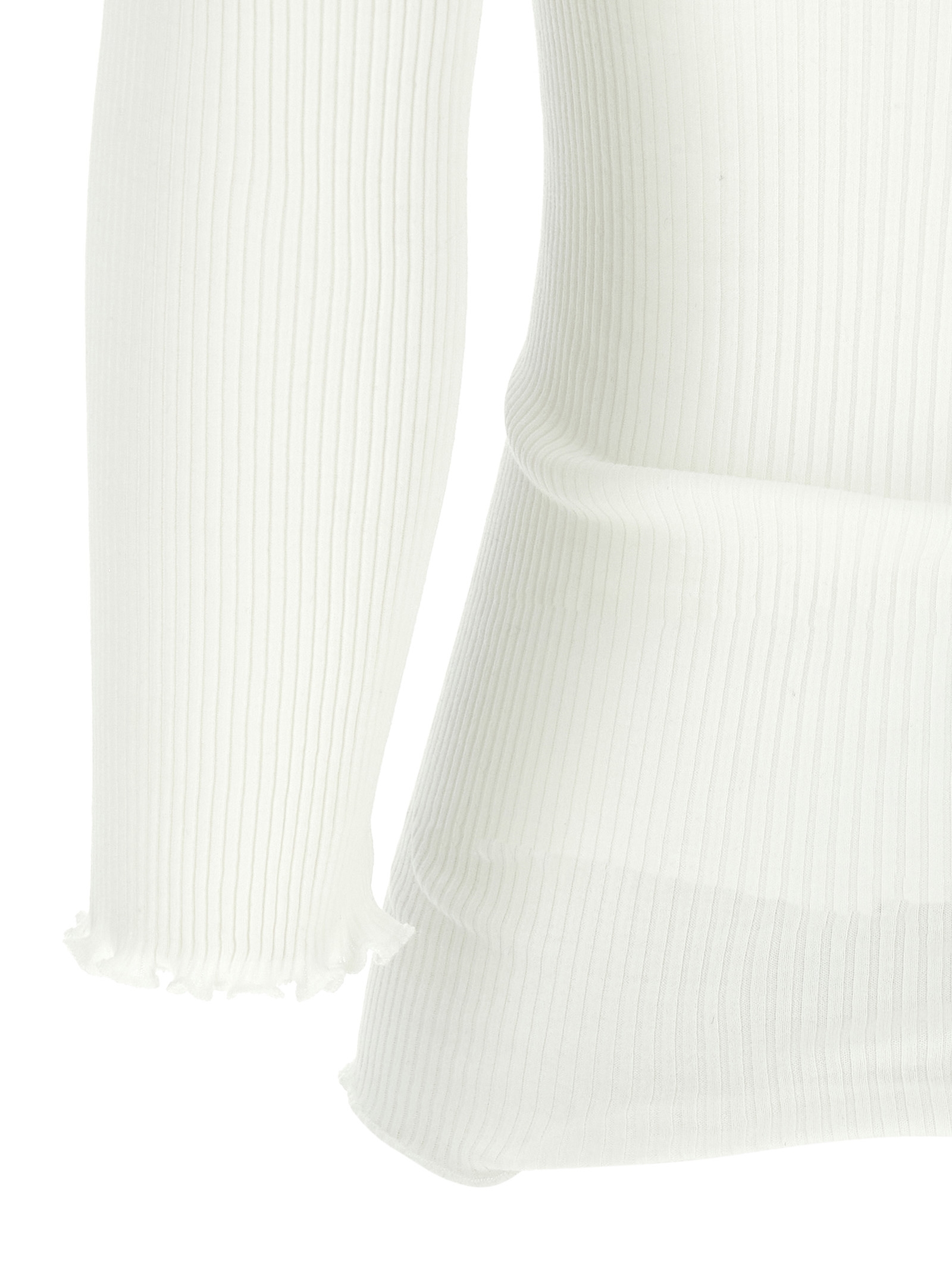 Ribbed tubular cotton cardigan, mini ruffles on the hem,