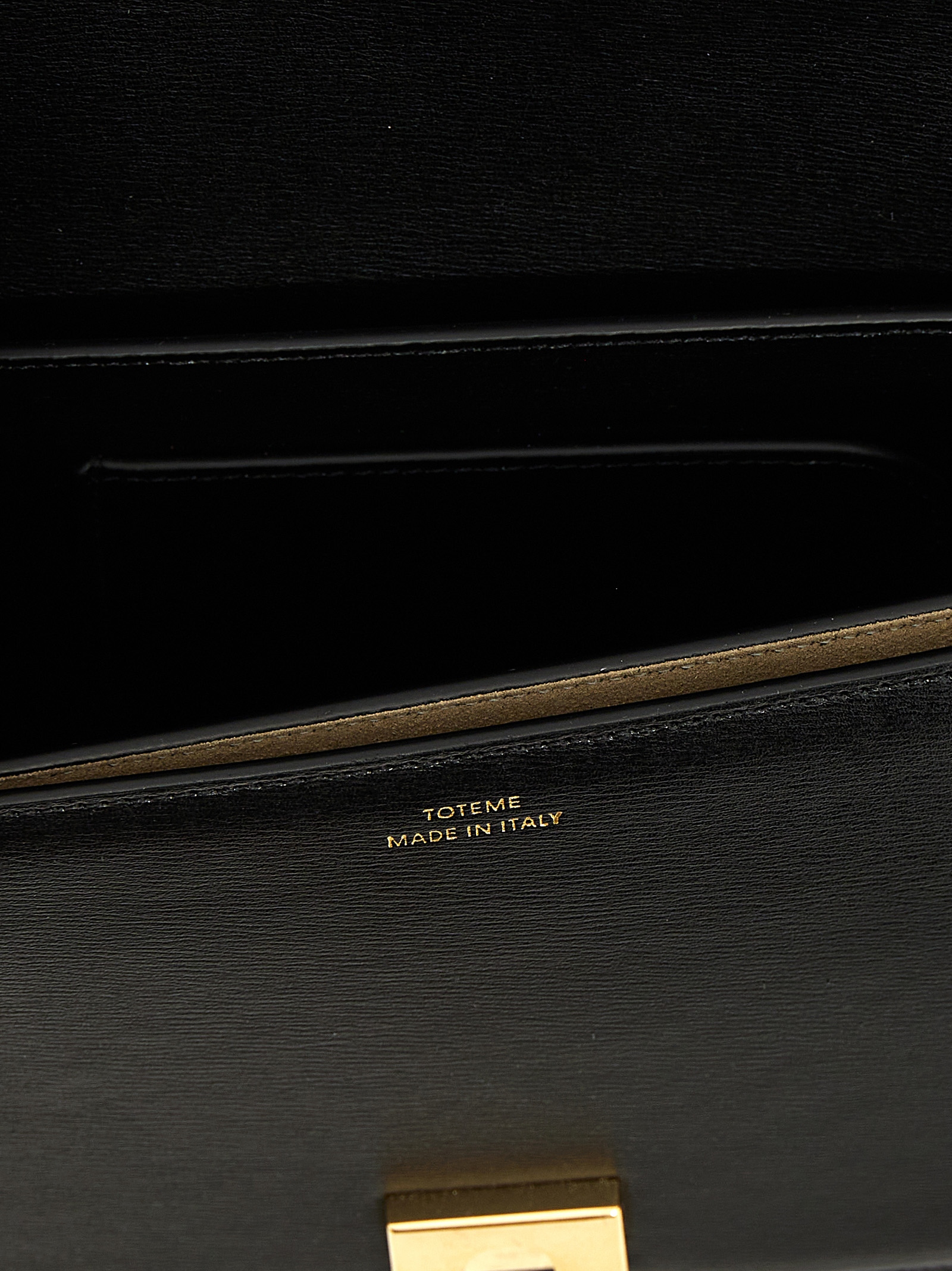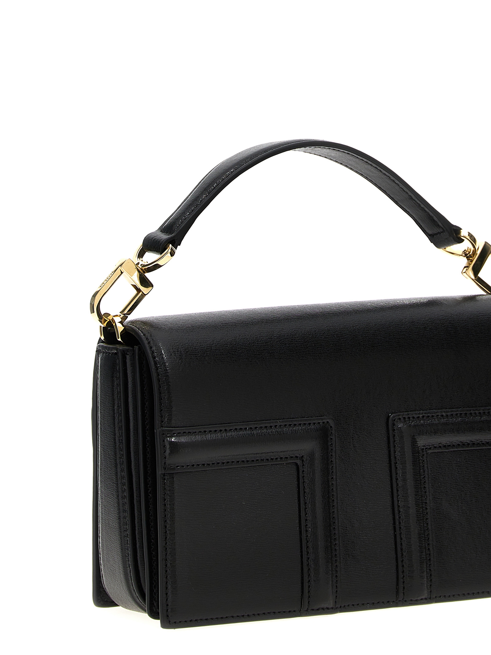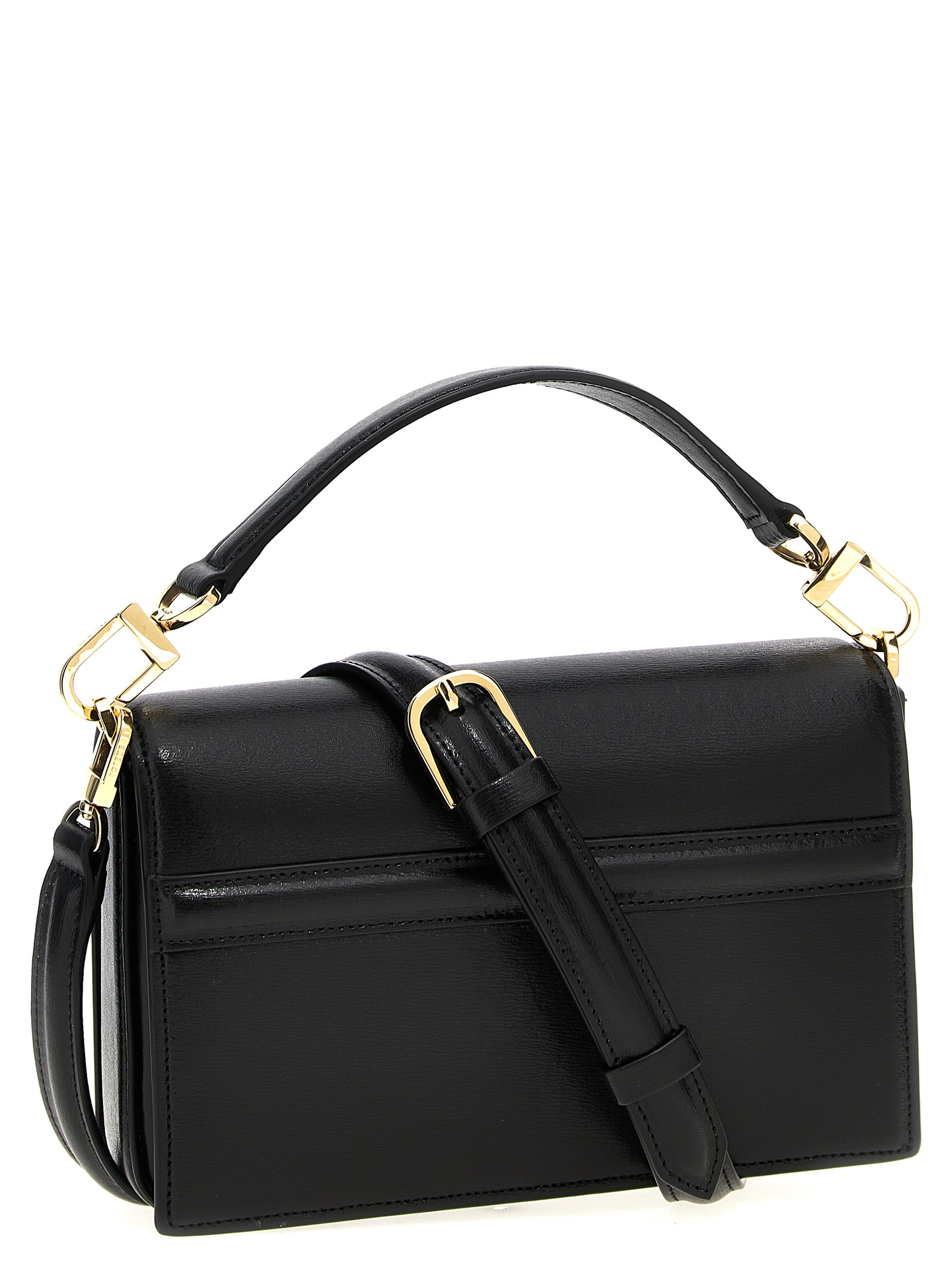‘Mini T-Flap’ leather handbag, front flap closure with logo, removable top handle, adjustable and removable shoulder strap.