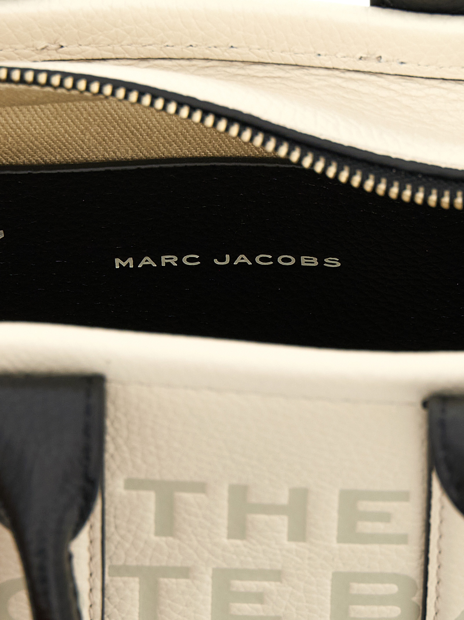 ‘The Colorblock Tote’ two-tone full-grain leather mini shopper bag with front embossed logo, top zip closure, double fixed handle, back logo patch, adjustable and removable shoulder strap.