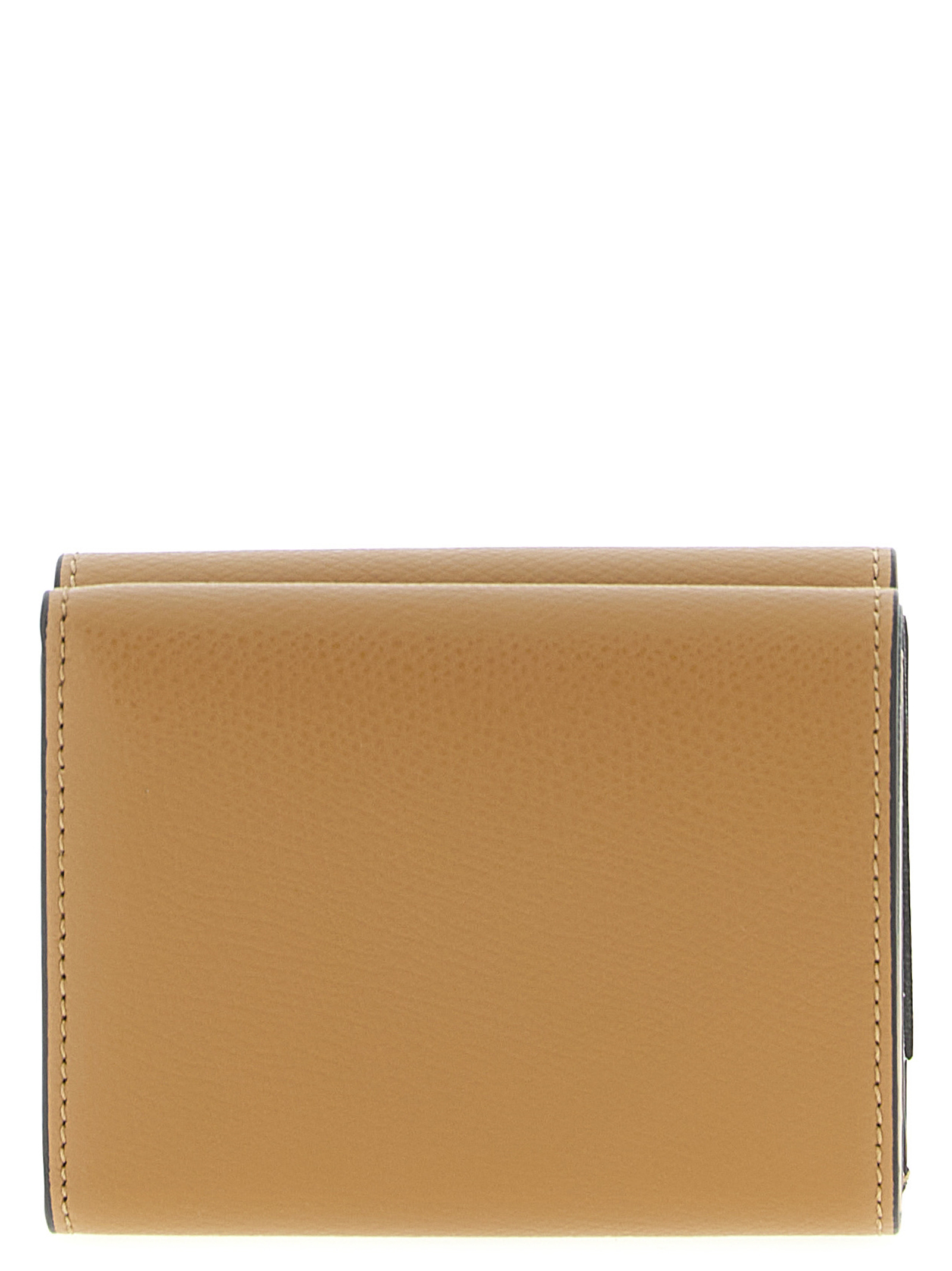 ‘Mini tri-fold FF Diamonds’ wallet in smooth and grainy leather, coin pocket with automatic closure and FF buckle. Gold metal details.