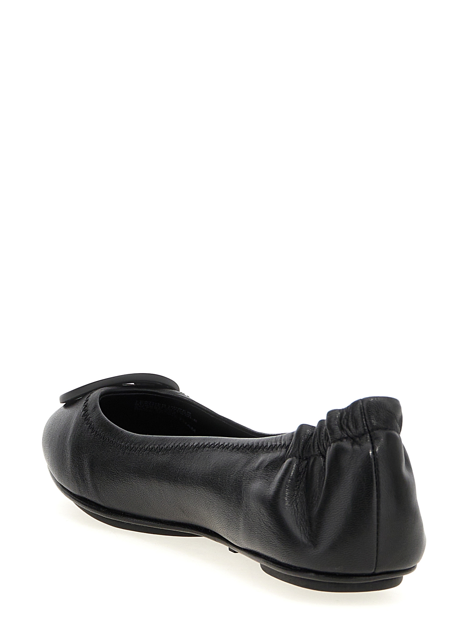 ‘Minnie Travel’ leather ballet flats with tone-on-tone metal logo plate on the front, rubber sole.