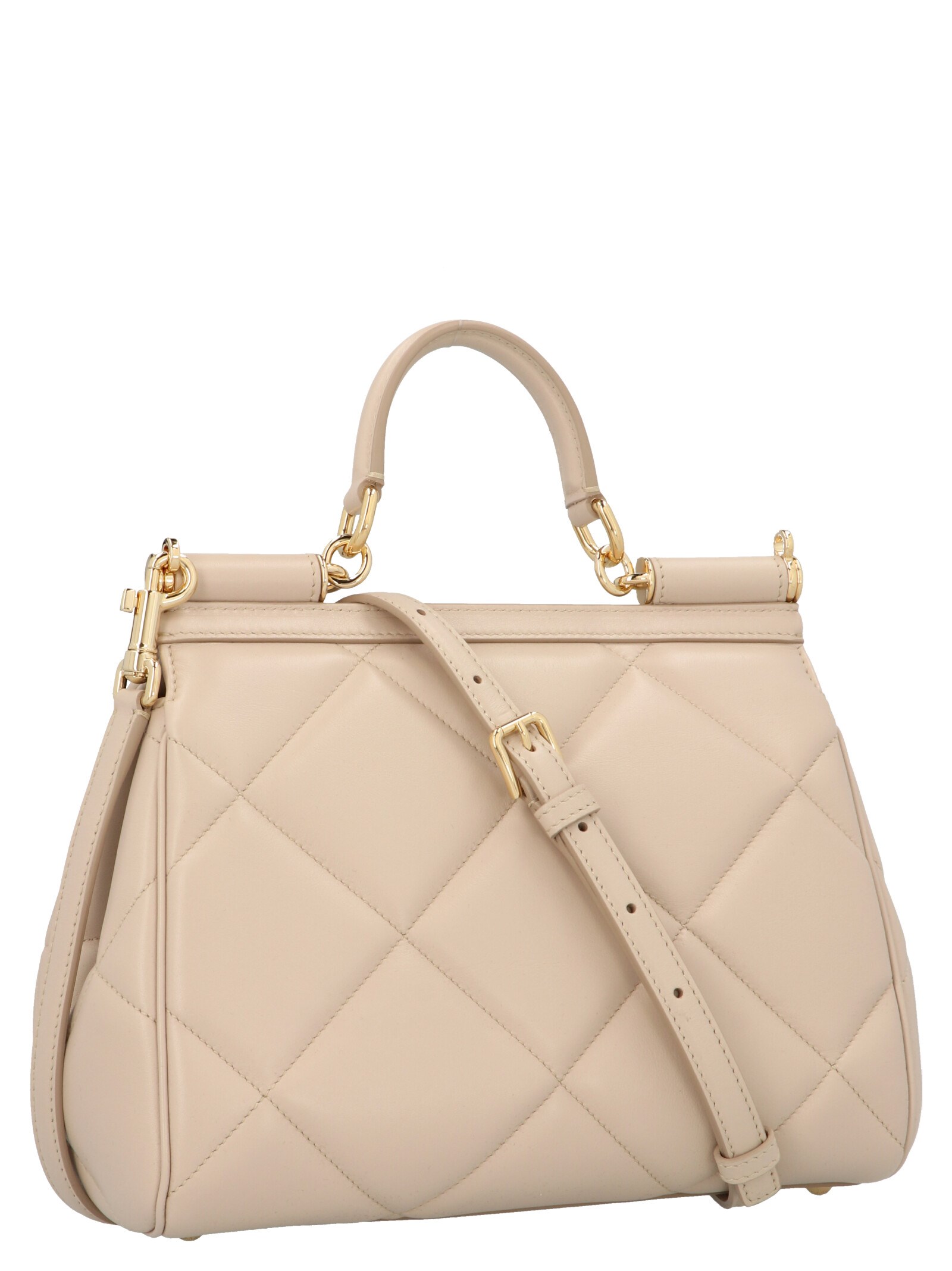 ‘Miss Sicily’ crossbody bag in matelassé calf leather with a top handle and a removable leather shoulder strap.