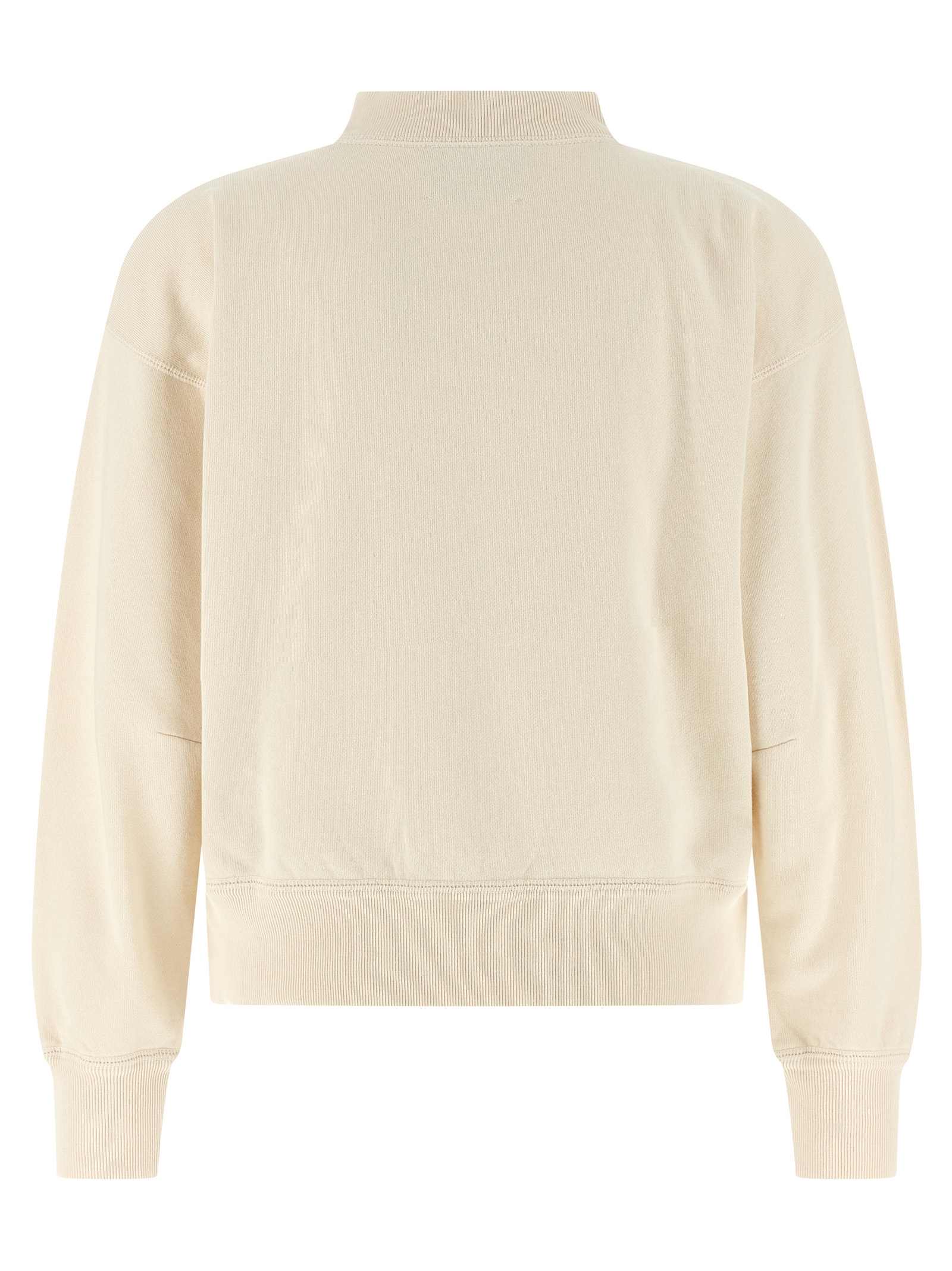 ‘Moby’ cotton sweatshirt with brushed interior, contrast flocked logo print on the front, V-stitching high neck, long sleeves with cuffs and dropped shoulders, and headband.