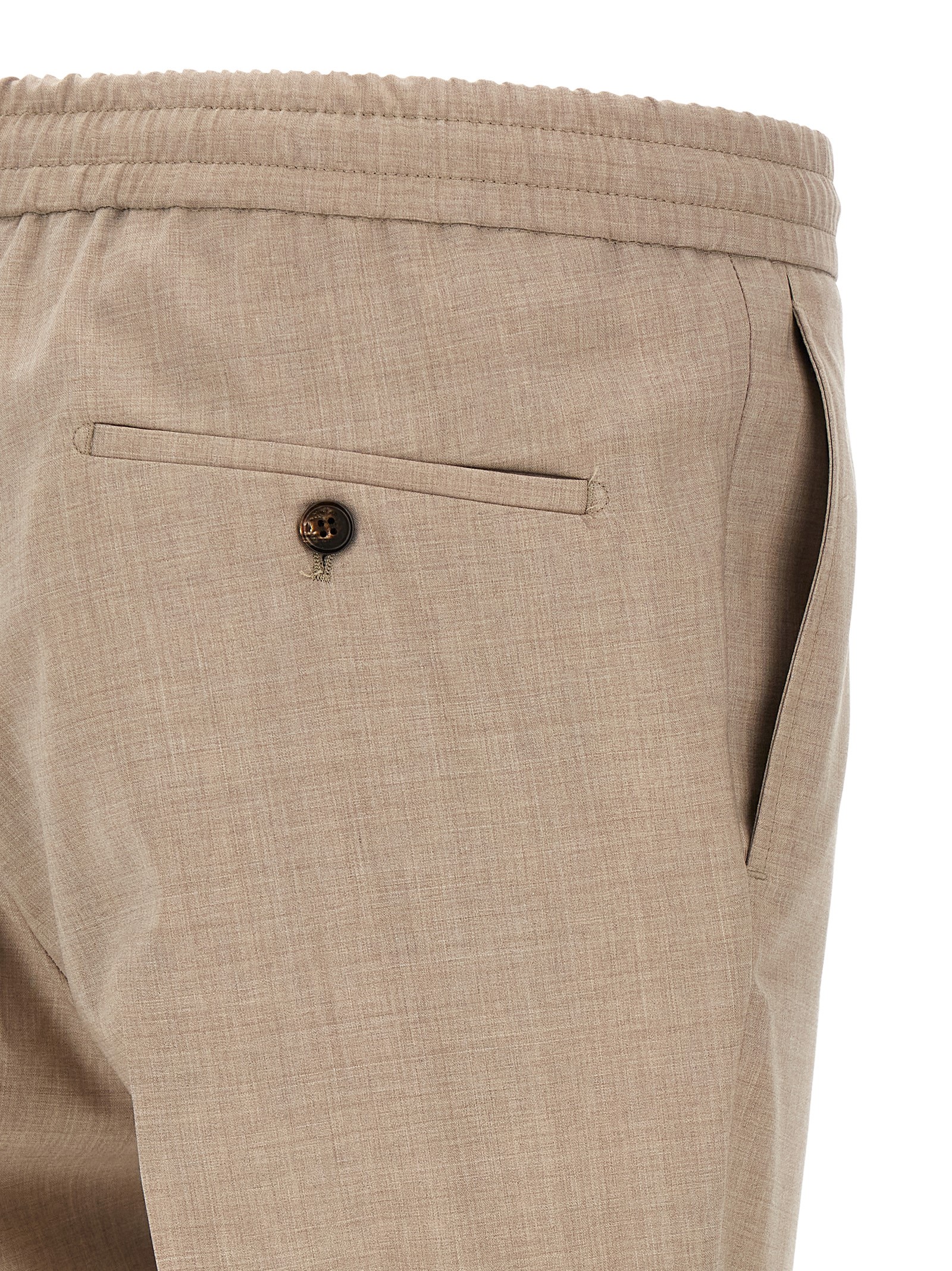‘Modello 78’ cool wool pants, straight leg, stretched pleat, drawstring elastic waistband, zip and front button closure, pockets.