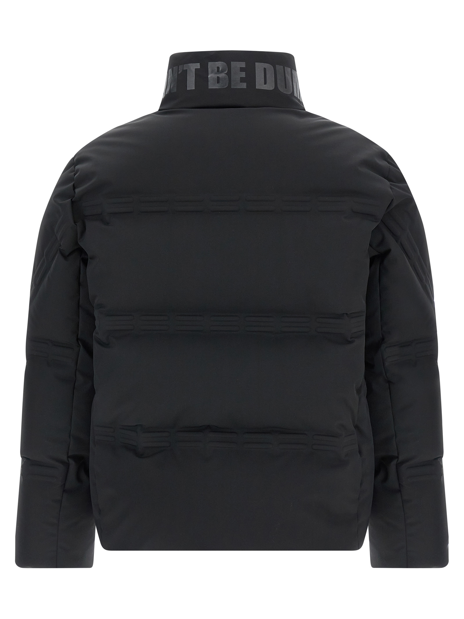 Moncler x A$AP Rocky ‘Rally’ padded and embossed jacket, high neck with back print, front zip closure, side pockets, side logo patch, long sleeves.