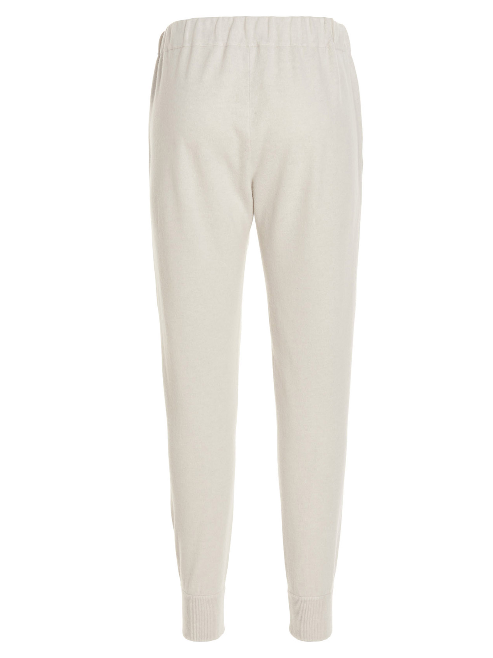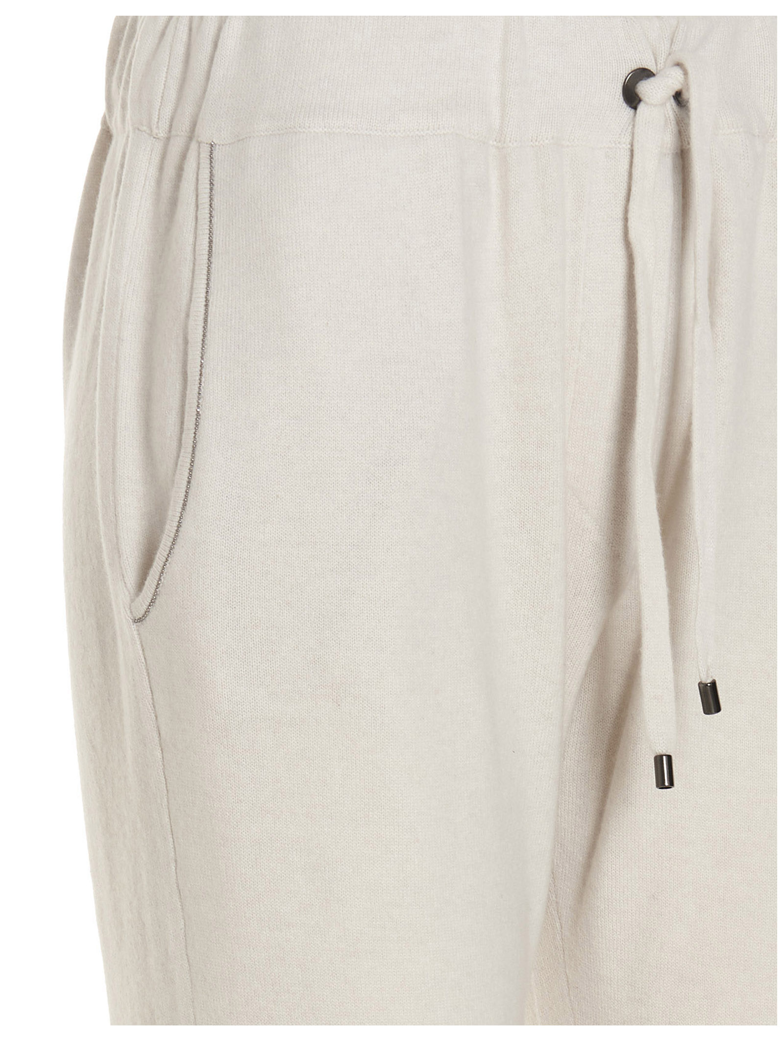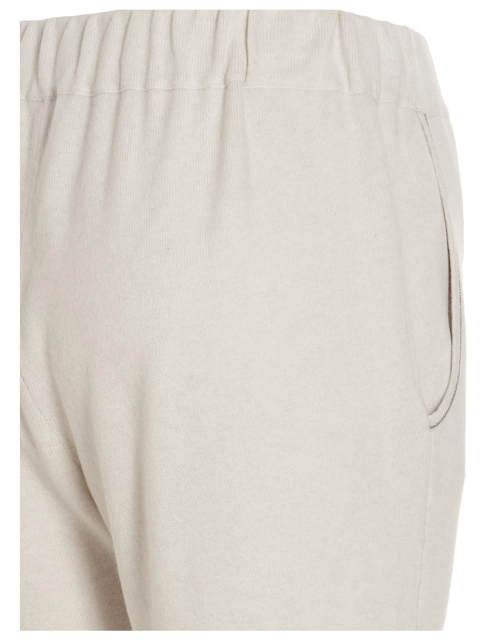 Cashmere and silk blend virgin wool joggers featuring an elasticized waist with a drawstring and cuffed leg bottoms. ‘Monile’ precious detailing on the pockets.