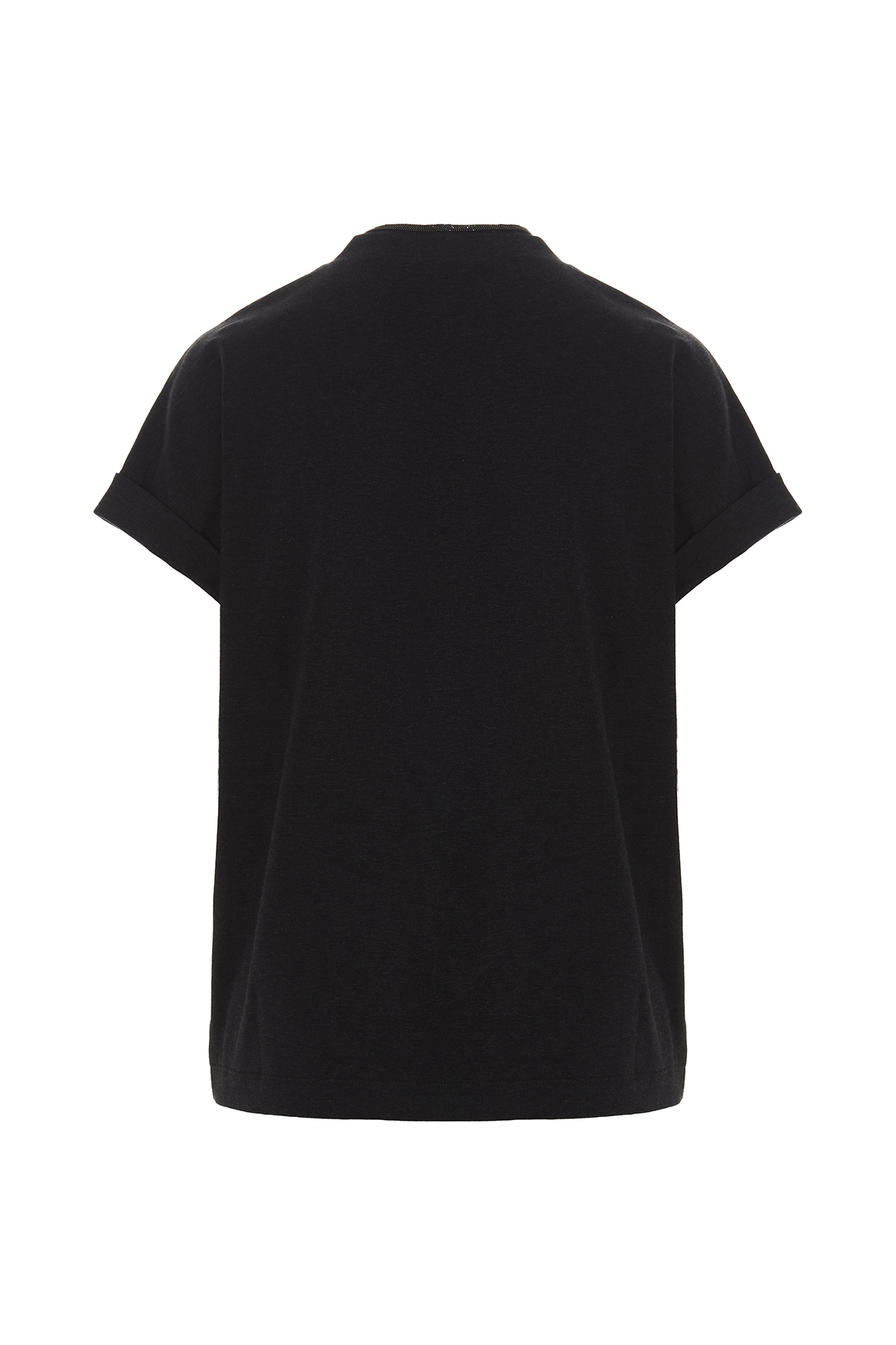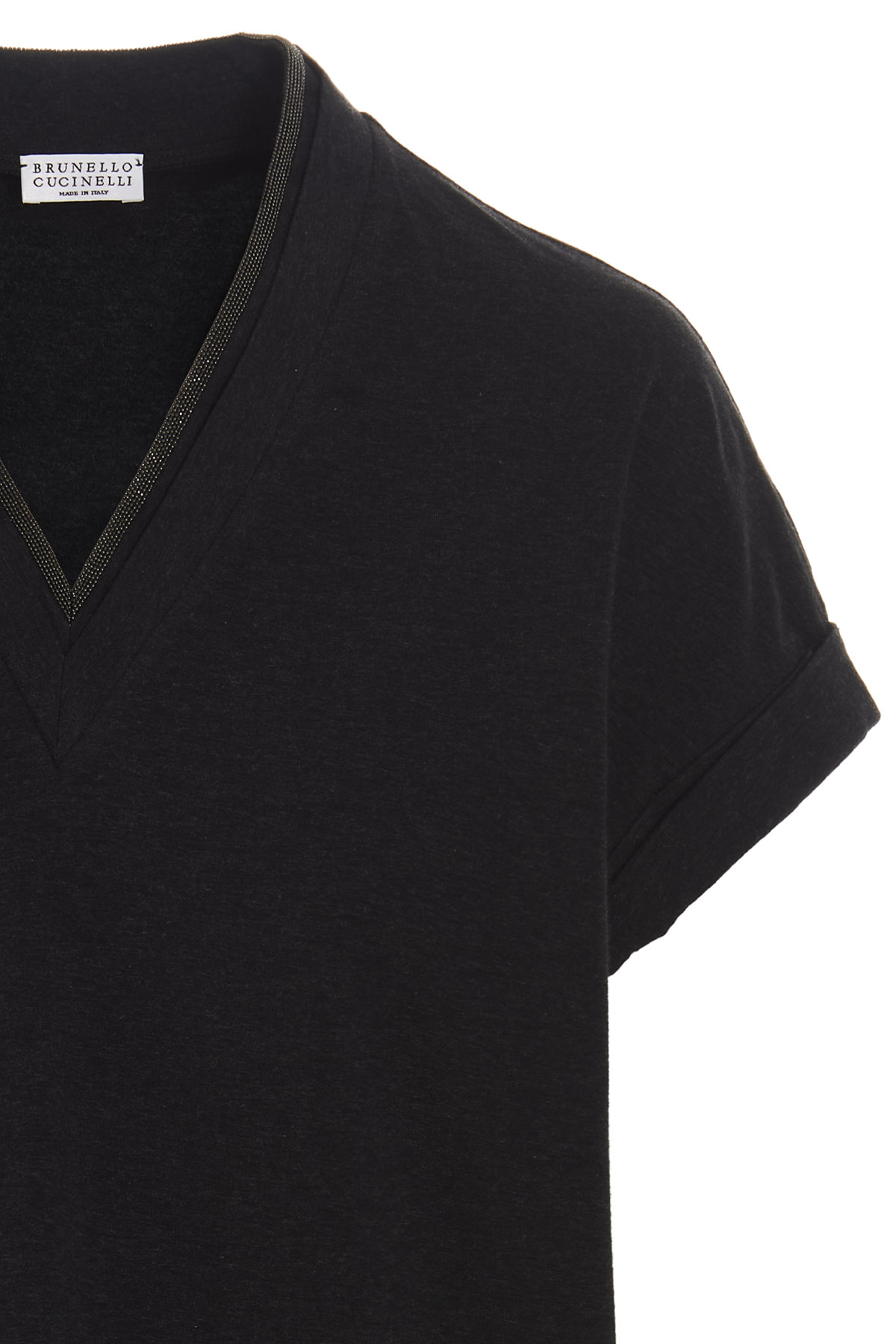 Brunello Cucinelli cotton jersey T-shirt with V-neck, Monile detail and turn-up short sleeves.