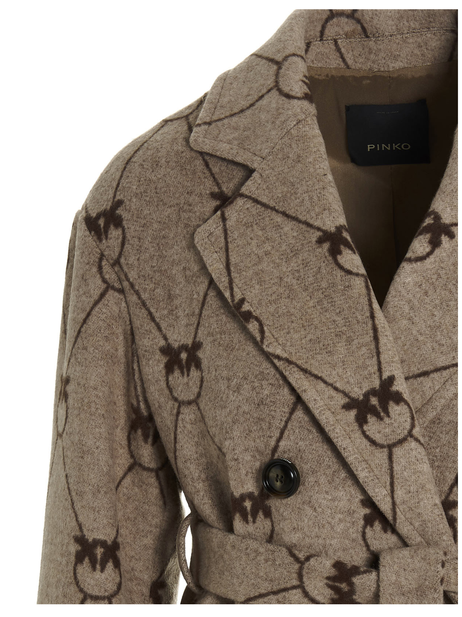 ‘Monogram’ double breast belted coat with all-over logo intarsia.