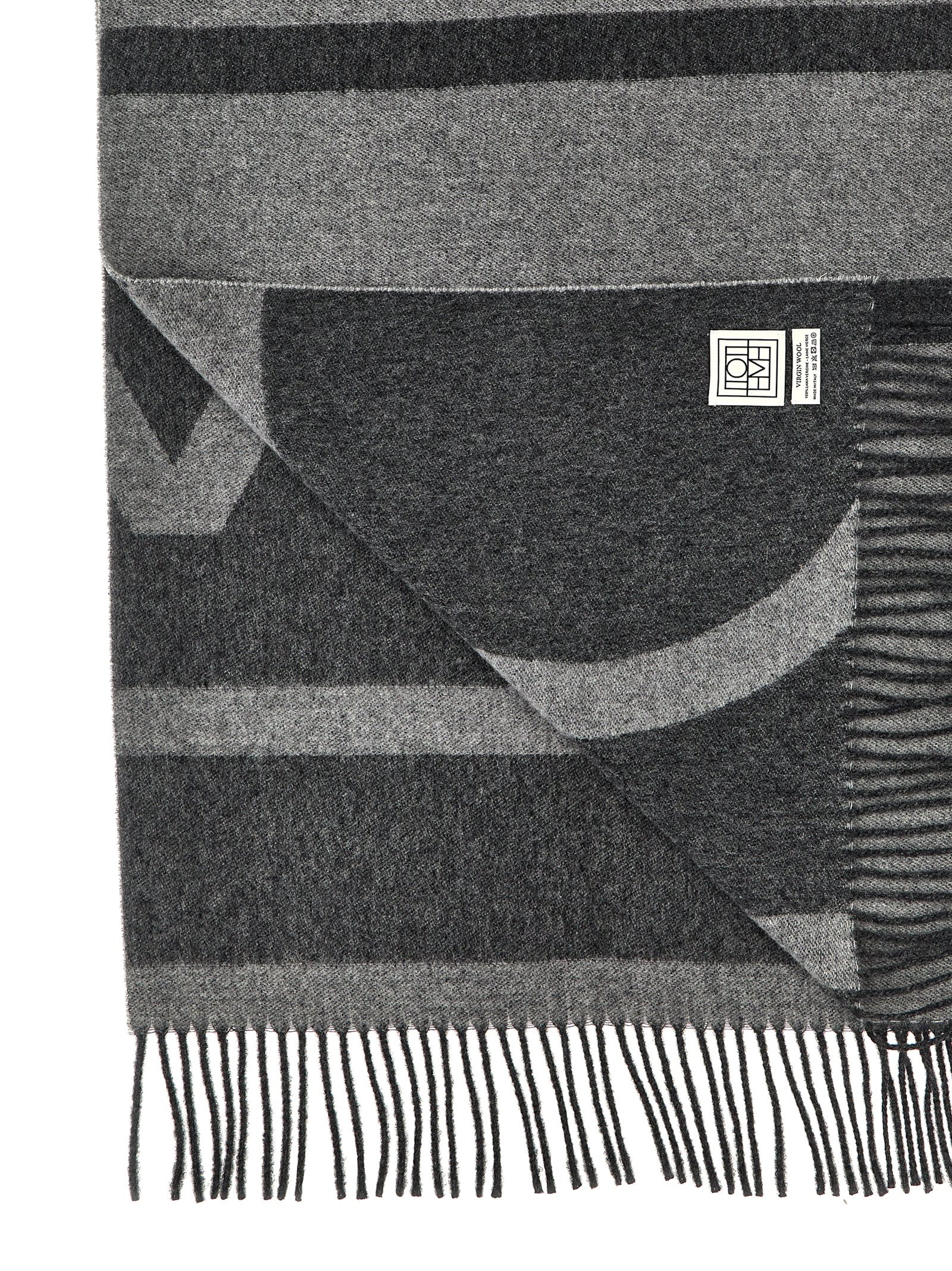 ‘Monogram’ jacquard wool scarf, fringed at the edges.