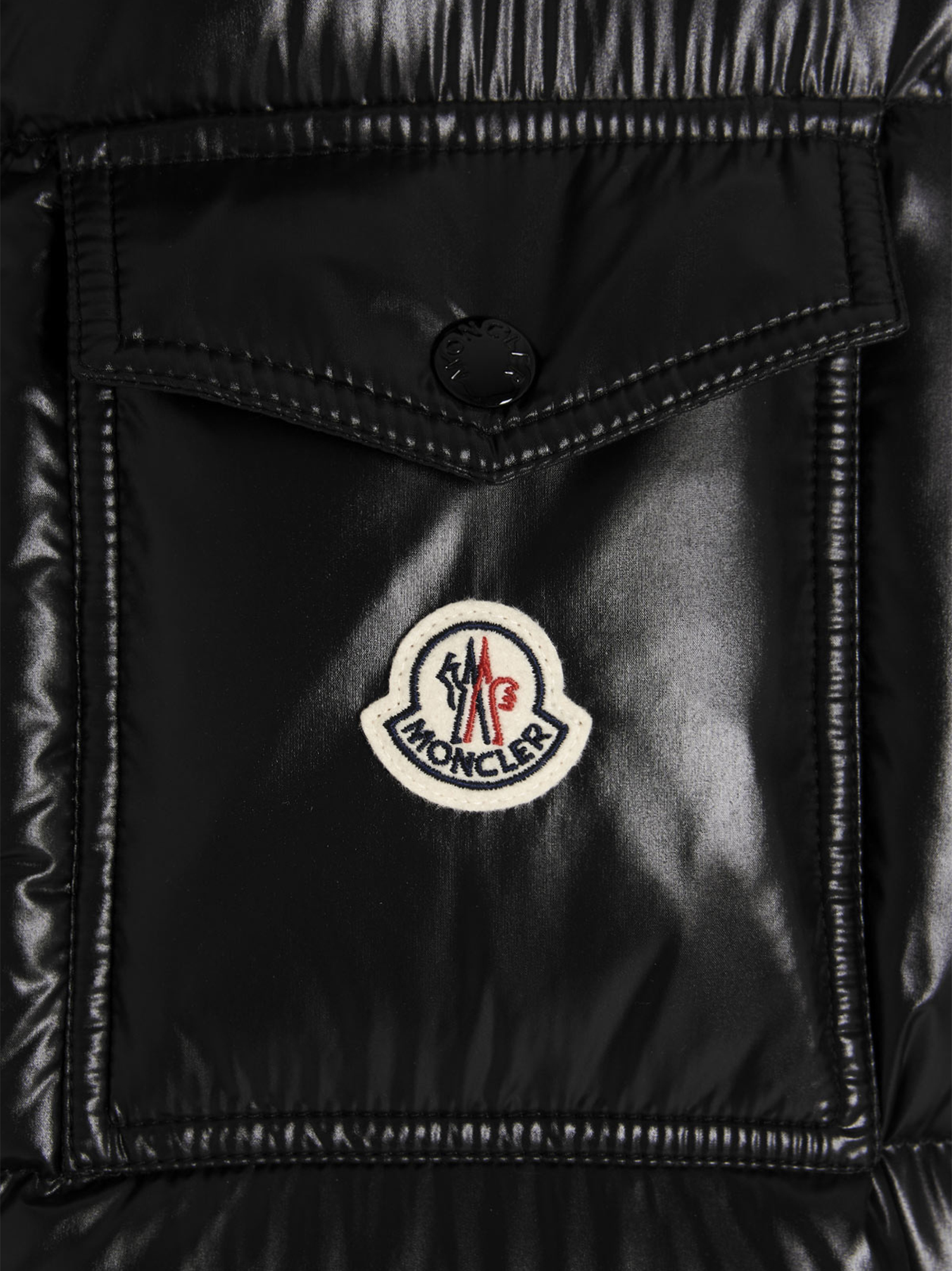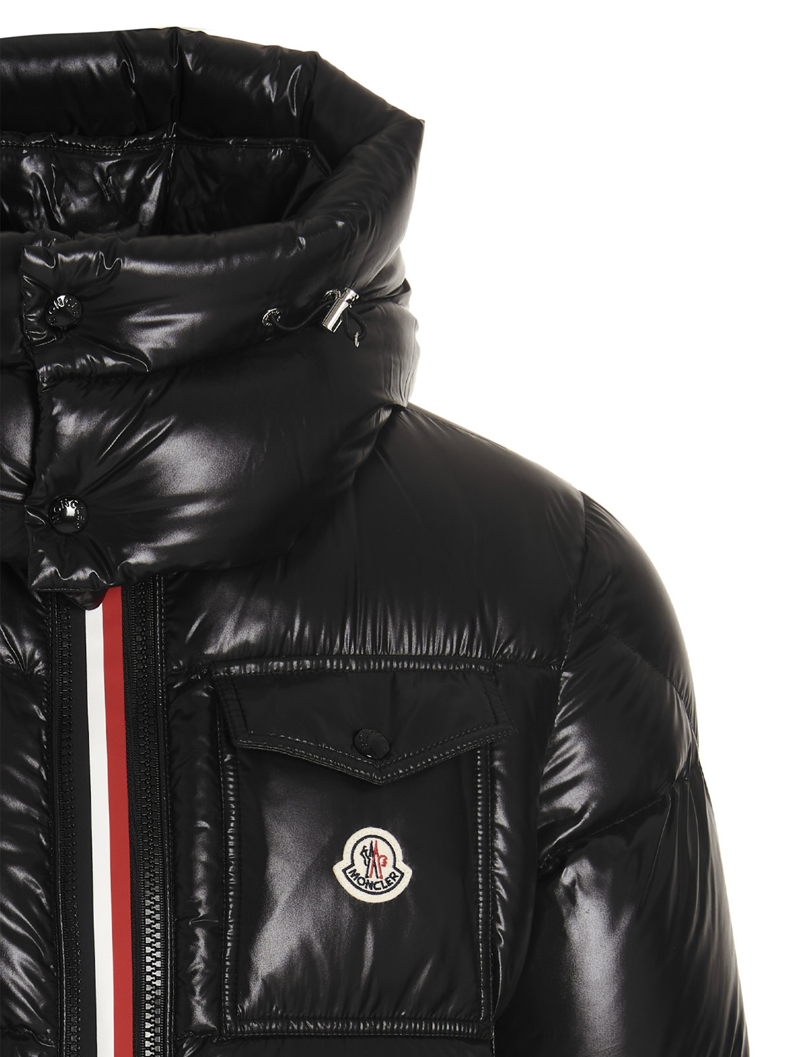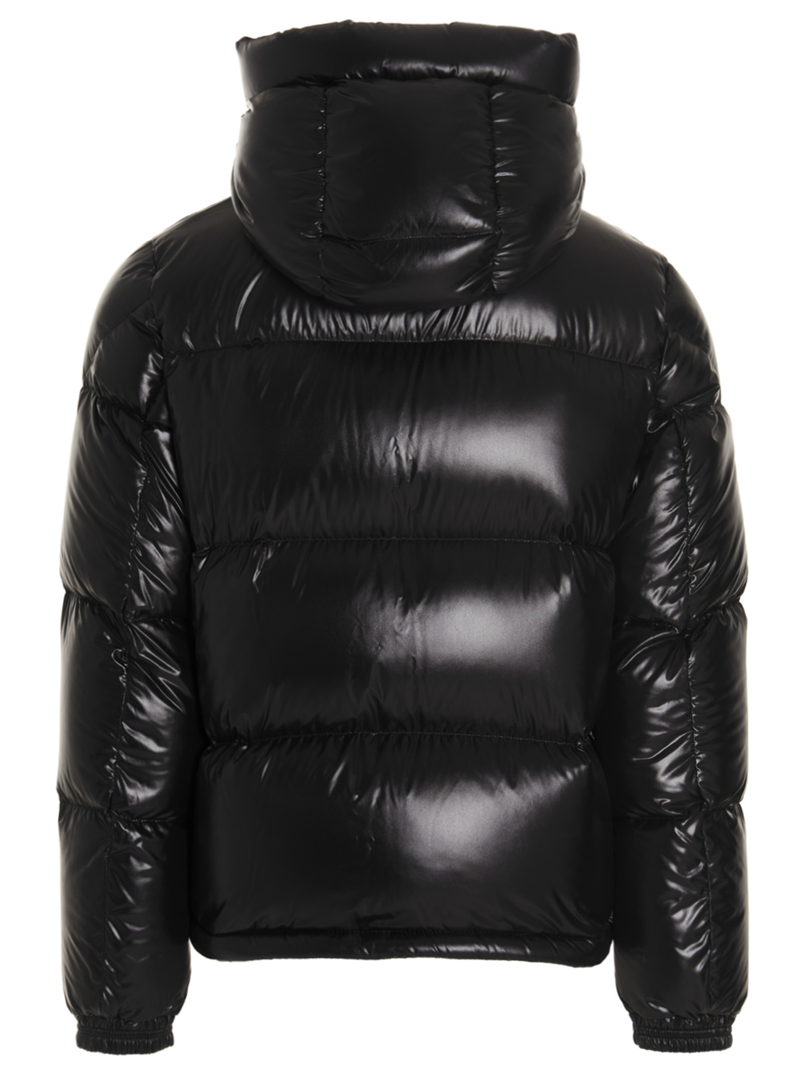 ‘Montbeliard’ quilted nylon laqué jacket with goose feather padding, adjustable and removable hood, felt logo patch and front zip closure, standing collar with snap button, external zip pockets, snap button patch pocket, inner zip pocket, adjustable cuffs with logo snap buttons, drawstring at the hem.
