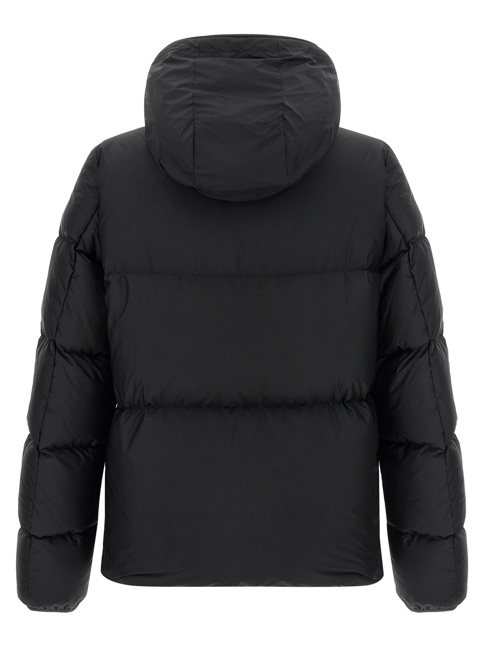 ‘Montcla’ quilted nylon down jacket, adjustable hood with elastic drawstring and grosgrain detail inside logo embroidery, front zip closure, maxi side pockets, long sleeves.