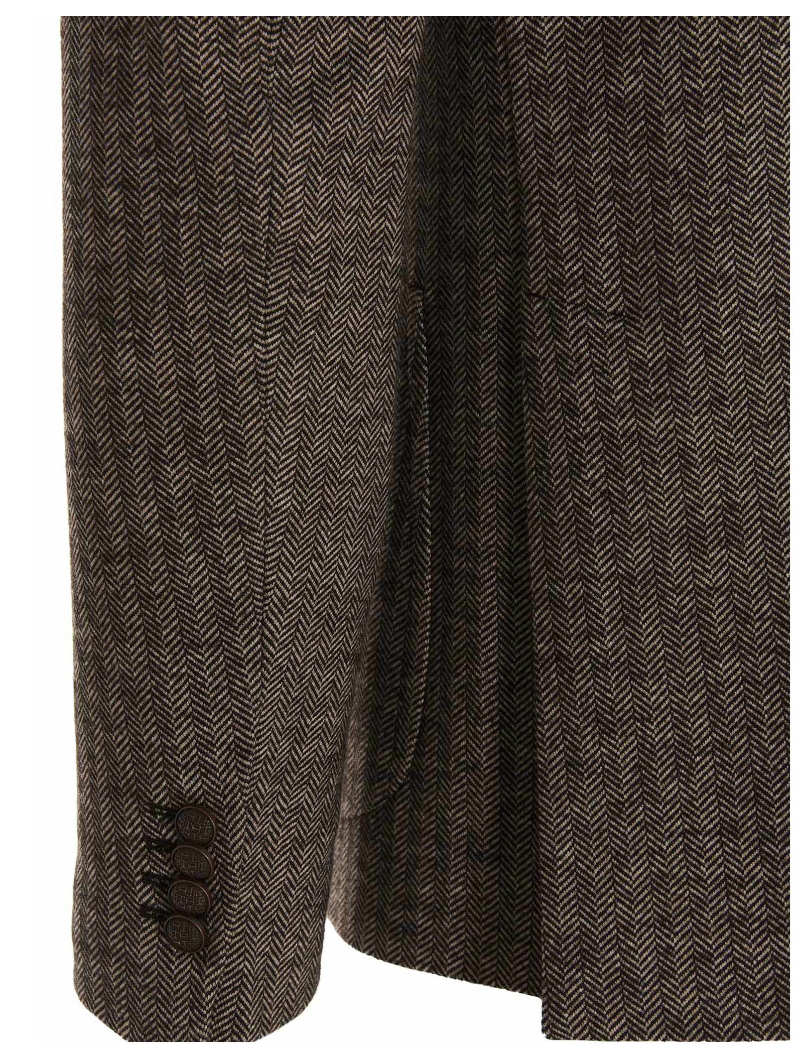 ‘Montecarlo’ virgin wool and cotton blend blazer jacket, featuring a single breast, pinstripe pattern, two-button closure, a double split at the back and patch pockets.
