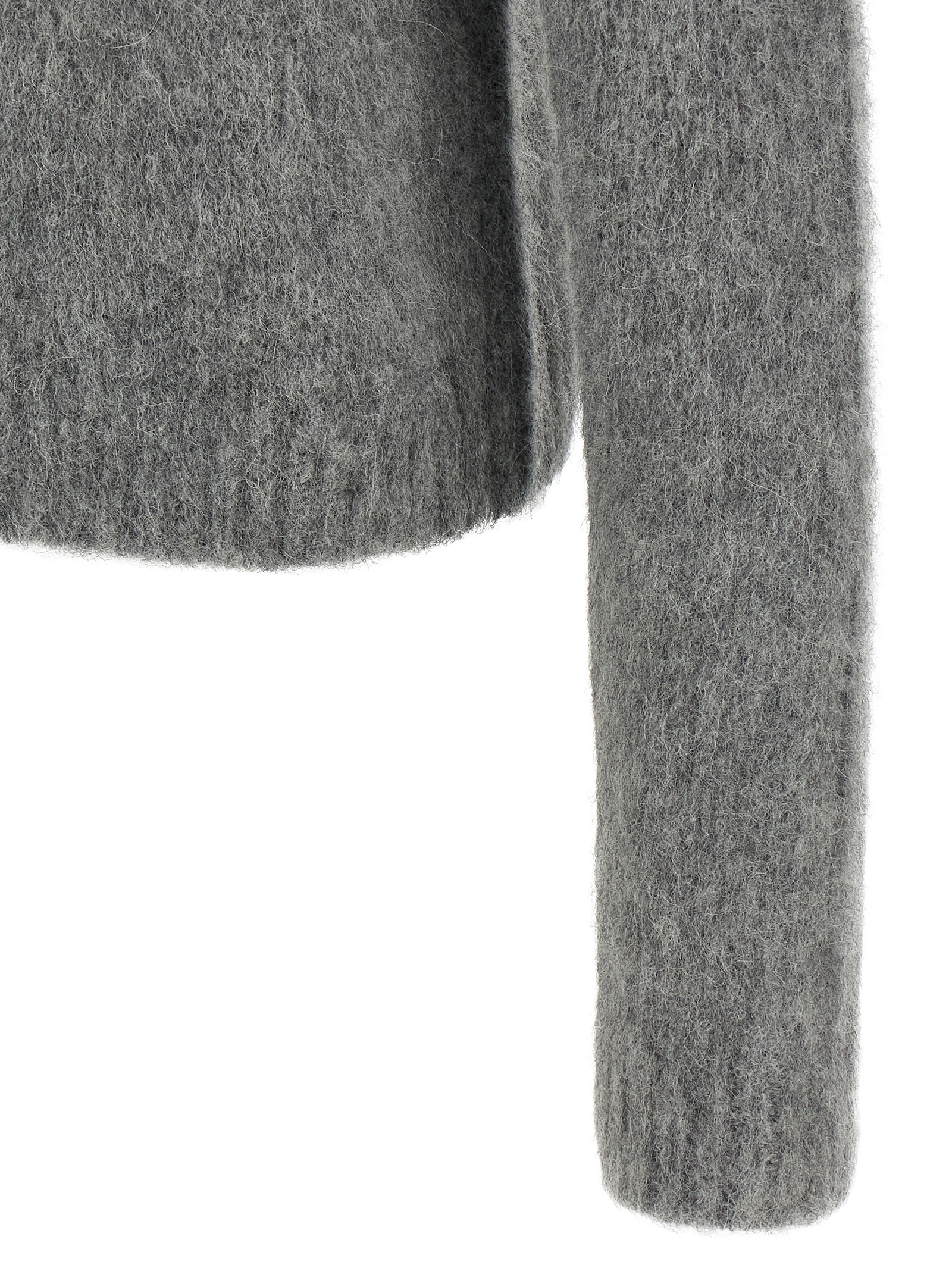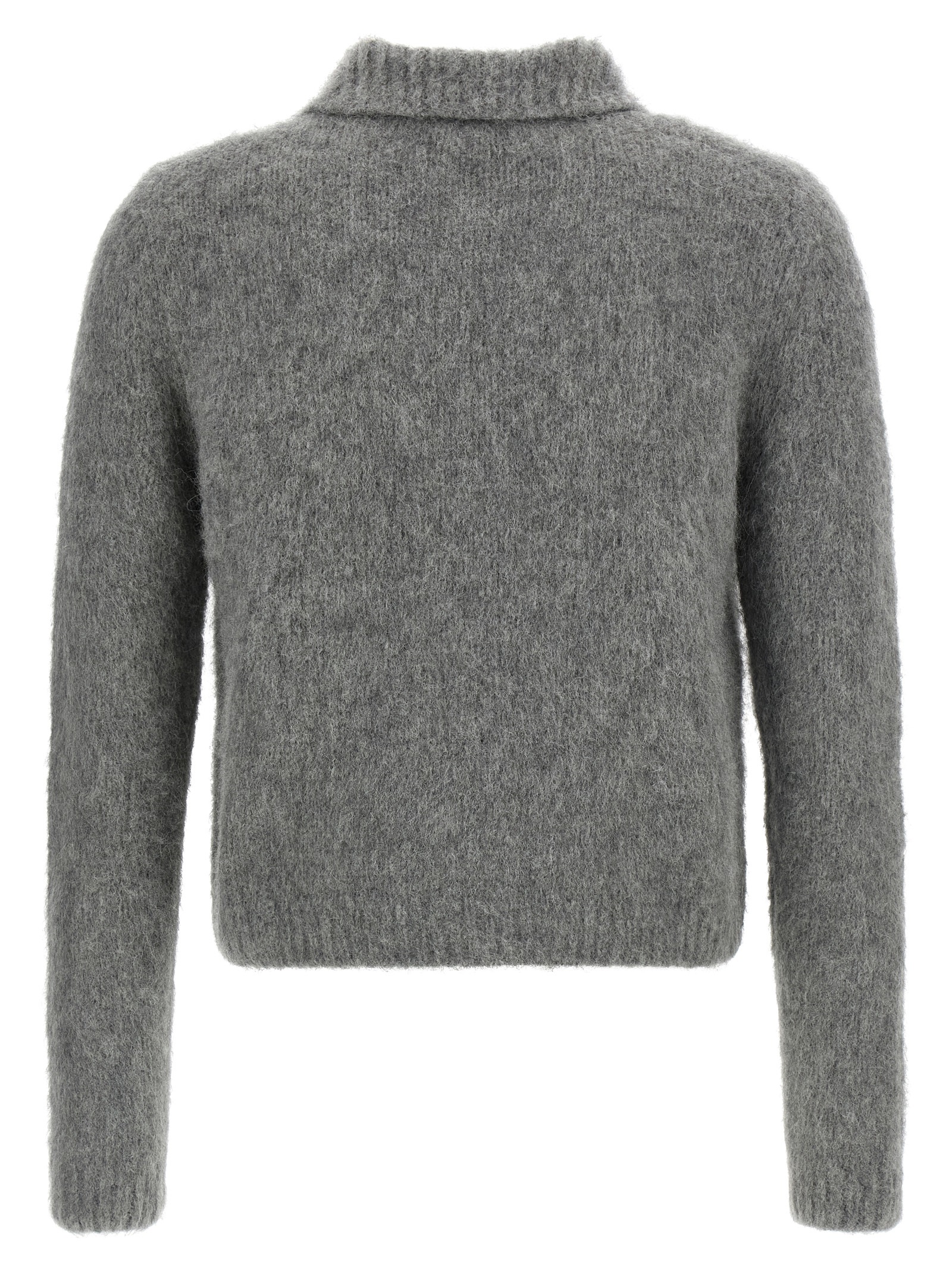 ‘Mora’ cardigan in alpaca and merino wool blend, shirt collar, front button closure, long sleeves.