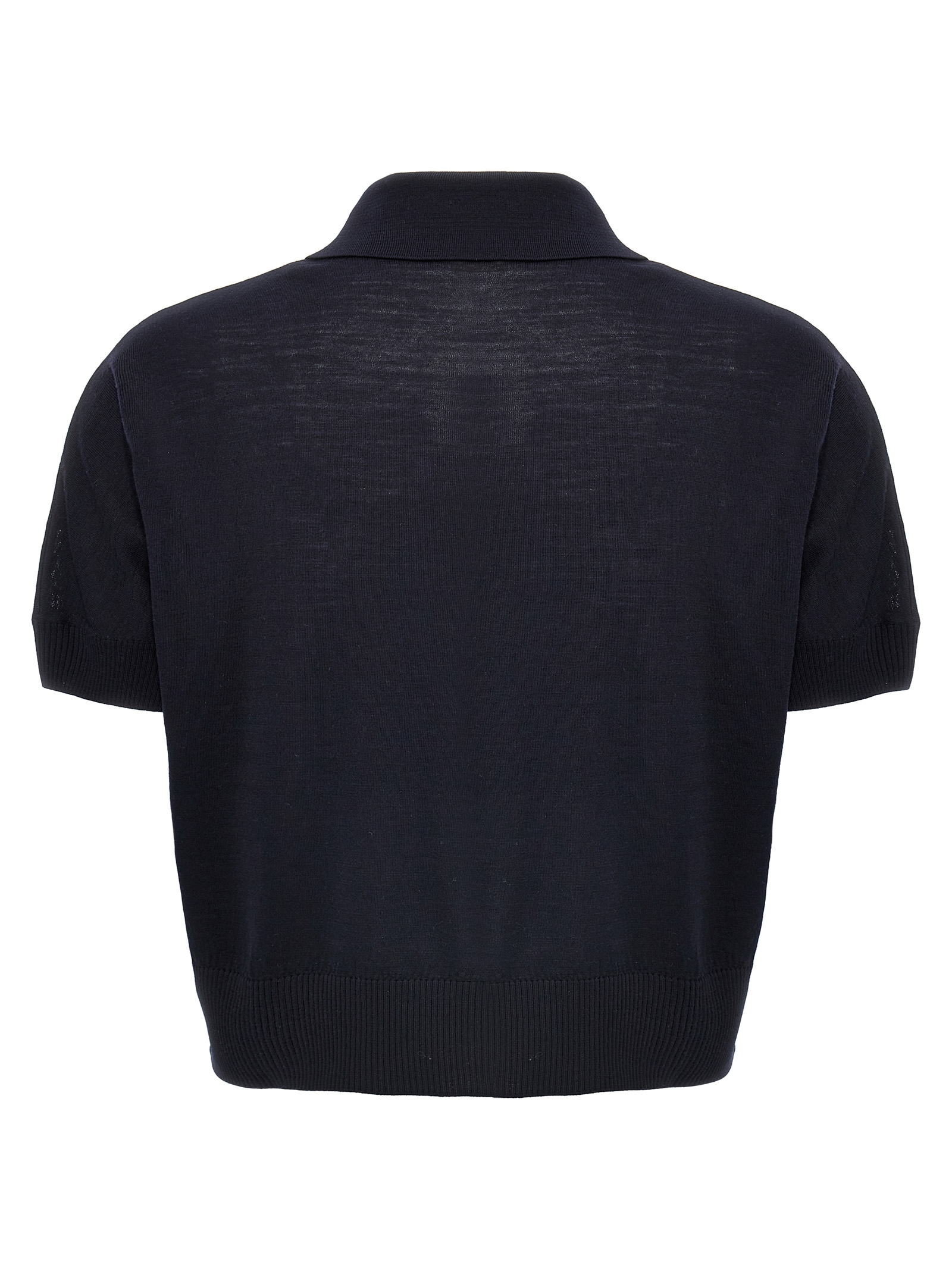 ‘Morgane’ crop top in wool, collar, short sleeves.