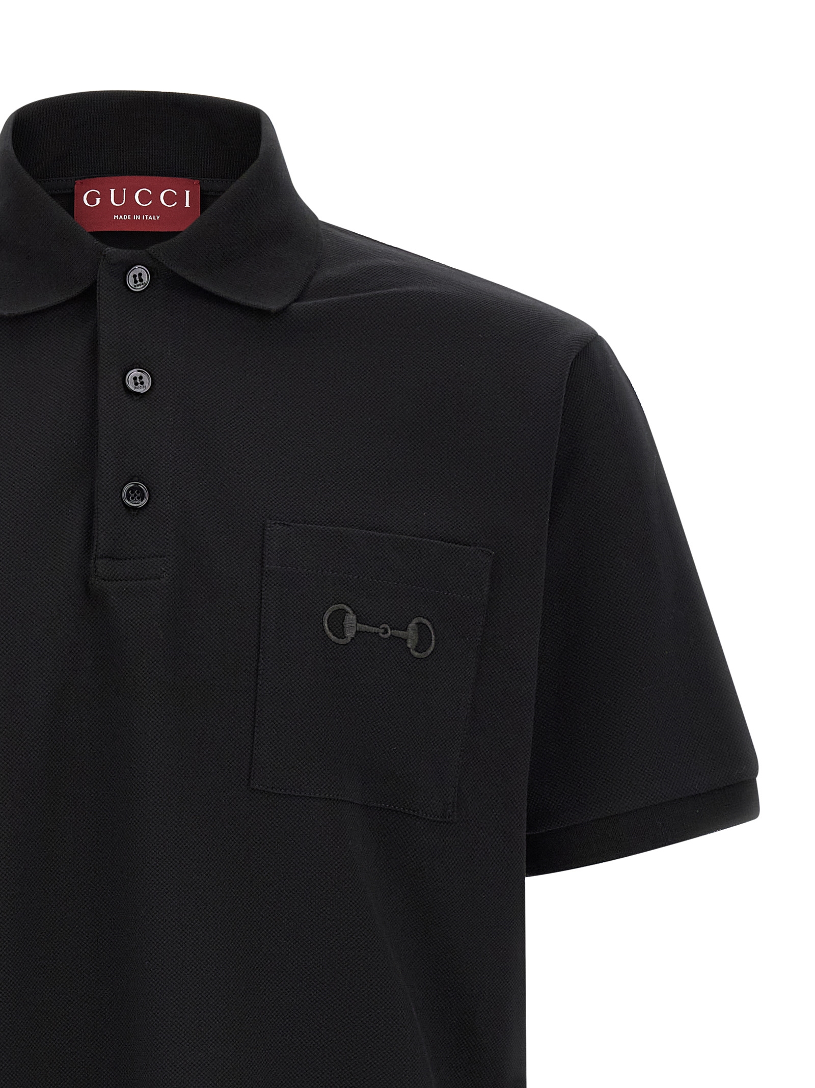 Polo shirt in stretch cotton piquet, pocket with tonal ‘Morsetto’ embroidery, collar and buttons, short sleeves with cuffs, side slits.