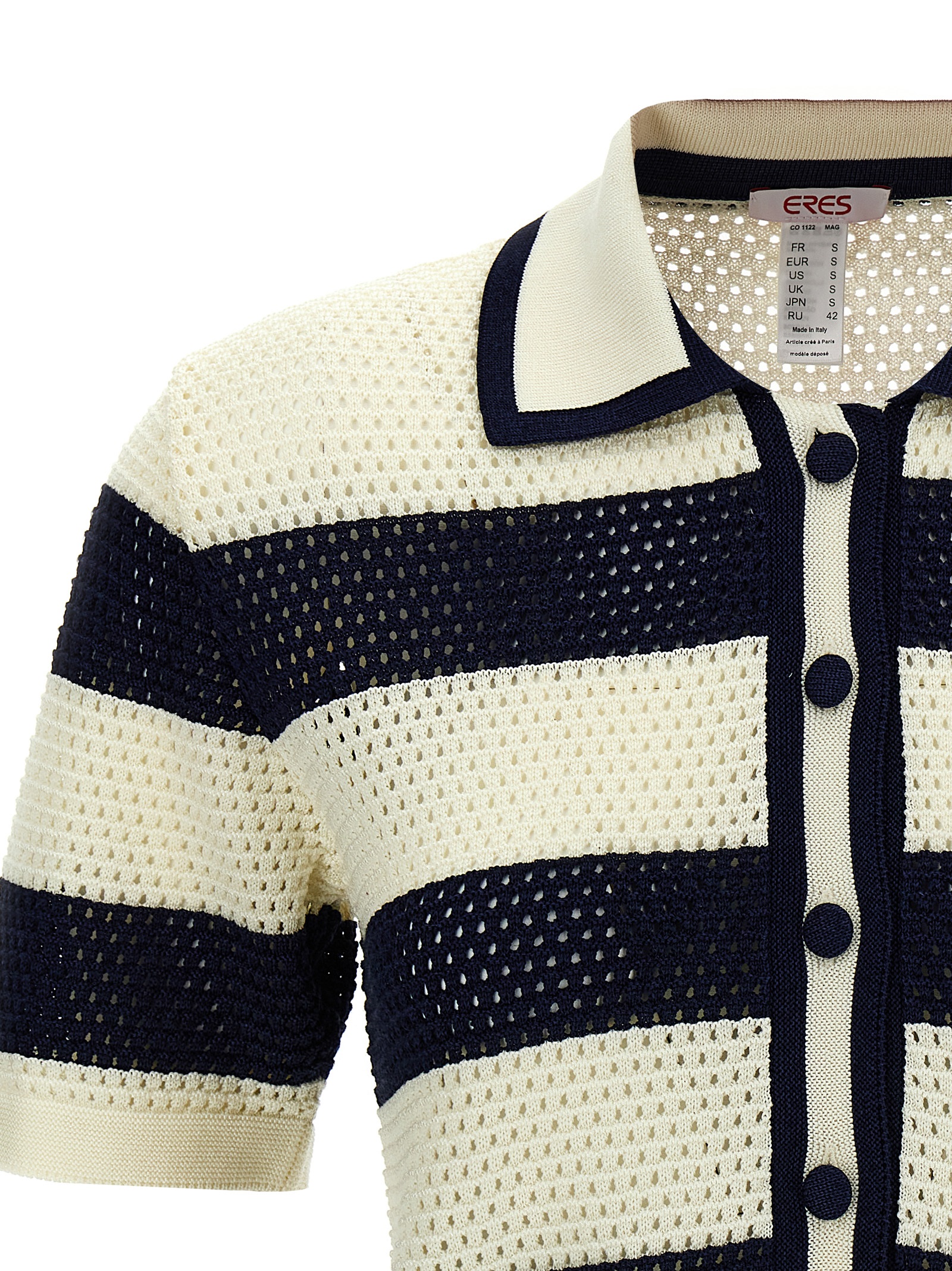 ‘Mouette’ polo shirt in cotton blend and perforated viscose knit with collar, front button closure, short sleeves.