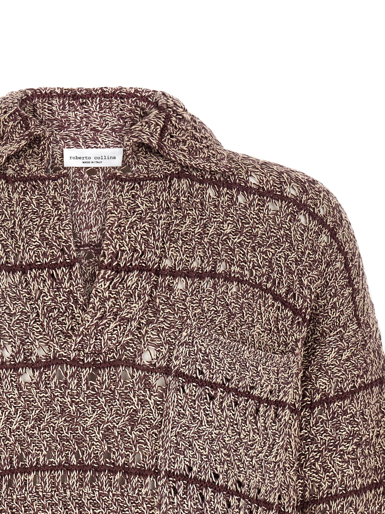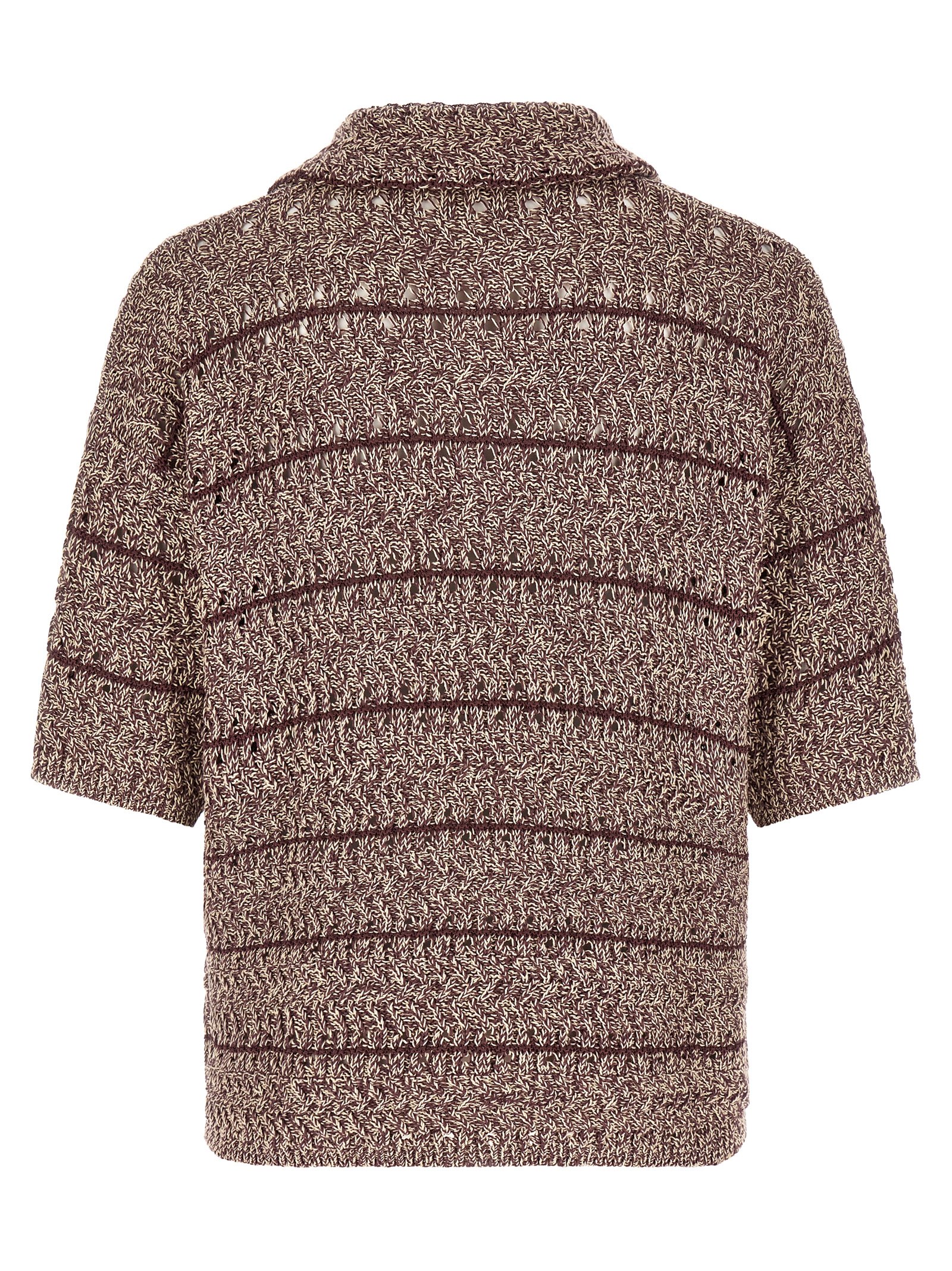 ‘Moliné’ texture stitch knitted polo shirt, mesh knit with different threads, pointed collar and V-neck, front pocket, ribbed trim on the bottom and sleeves.