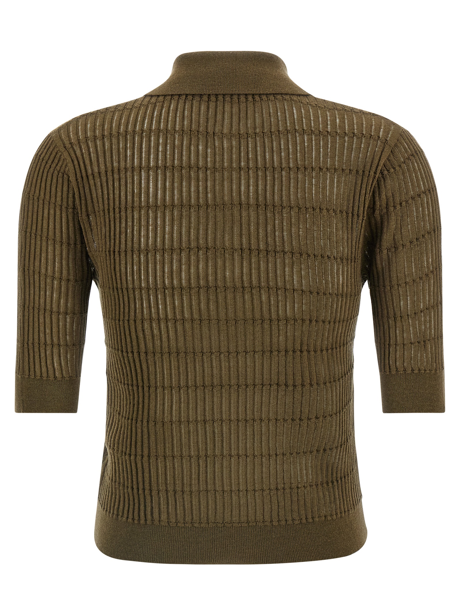 ‘MstGallo’ polo shirt in wool and silk yarn worked in flat ribbed with à jour details, collar and buttons, short sleeves with cuffs, band on the hem.