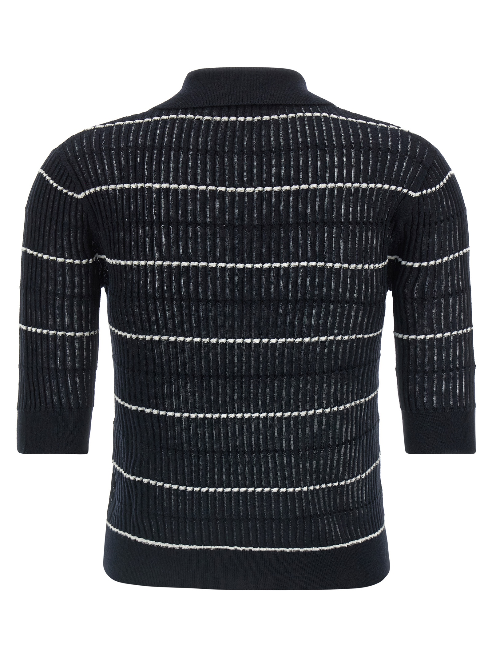 ‘MstGallo’ polo shirt in wool and silk yarn worked in flat ribbed with à jour and contrasting stripe details, collar and buttons, short sleeves with cuffs, band on the hem.