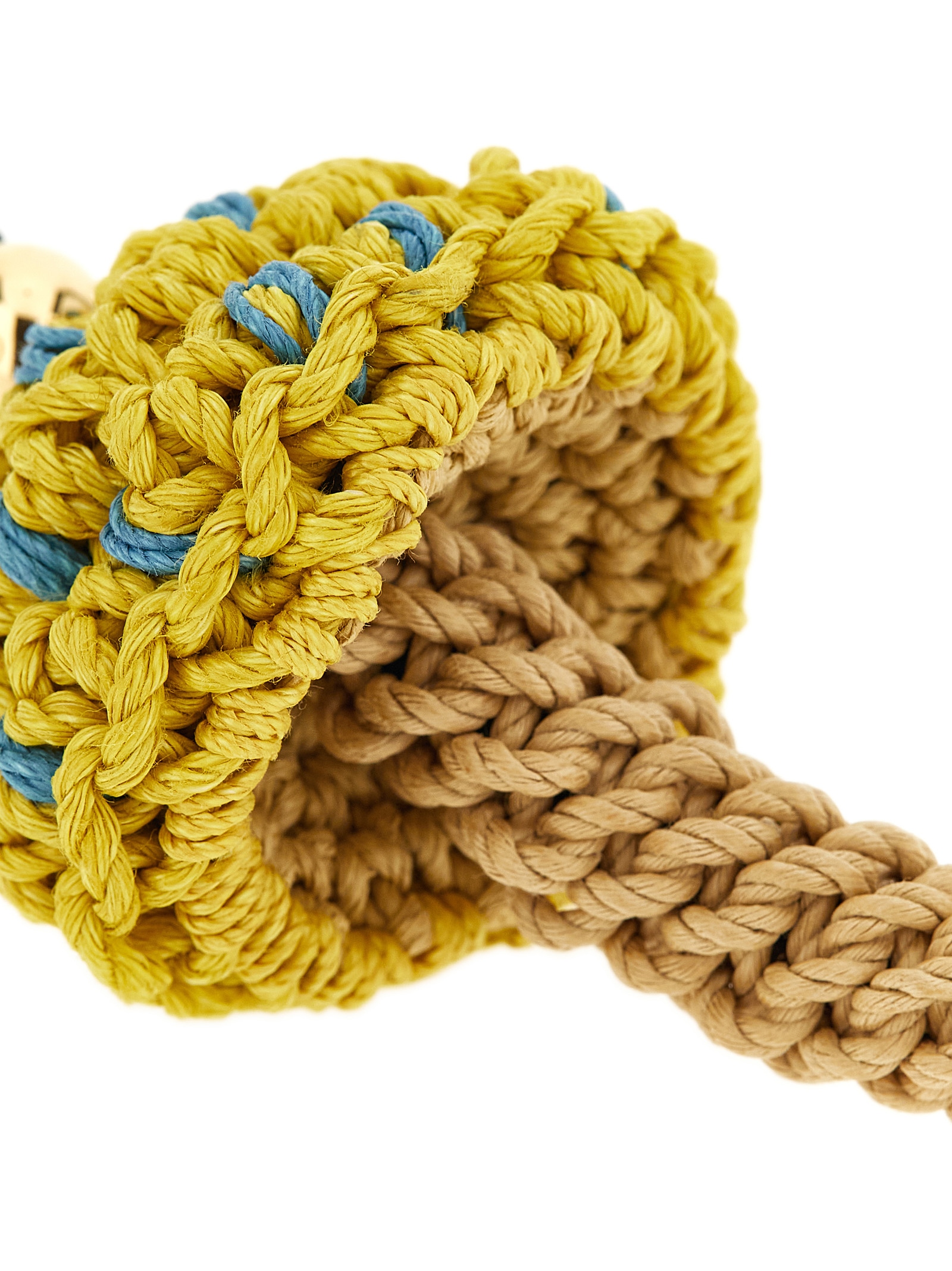 Braided rope ‘Mushroom’ pendant with calf leather loop strap and metal ‘Anagram Pebble’ nut.