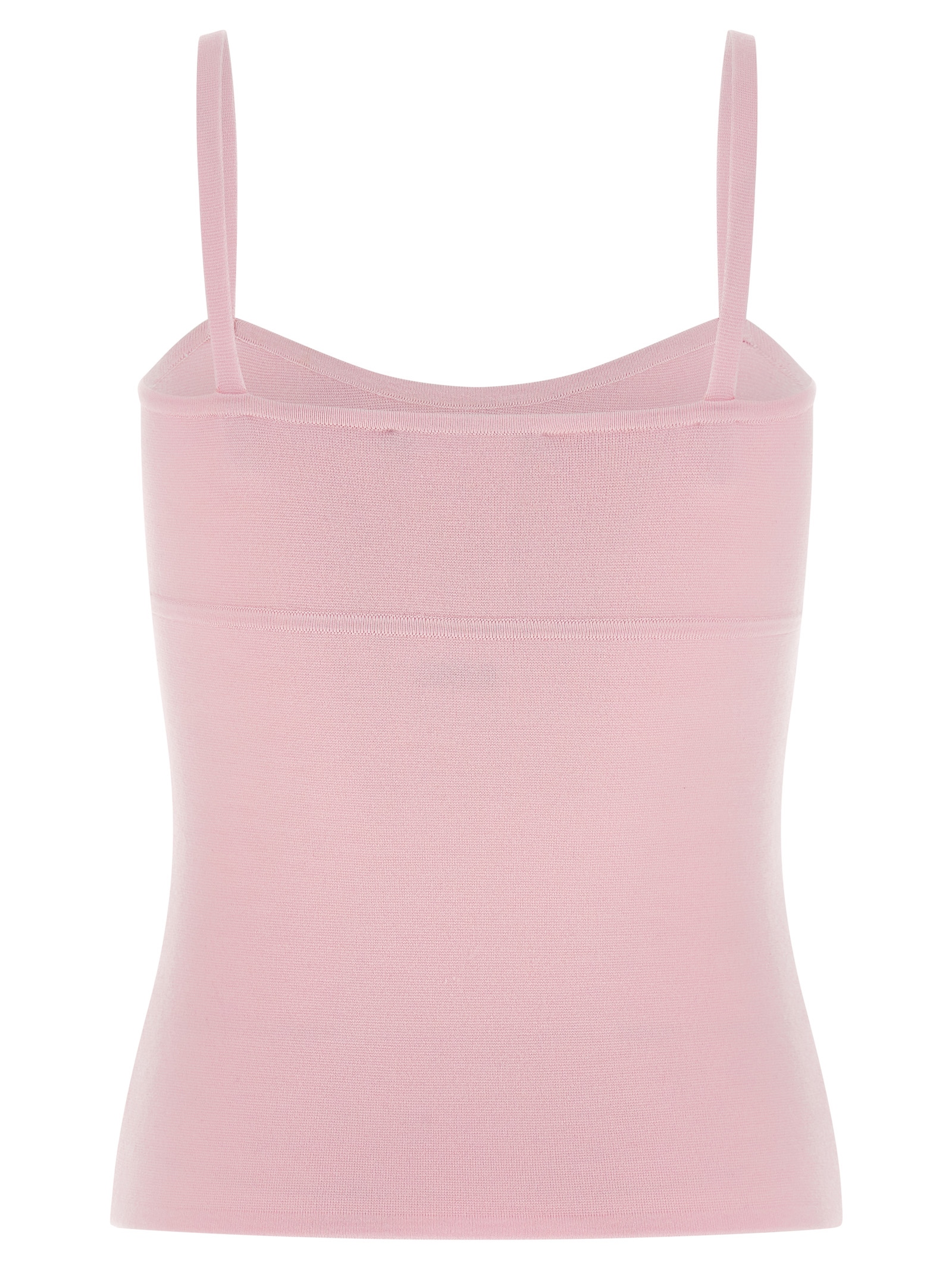 ‘Mxmepica’ top in pure wool yarn worked in fabric stitch, sweetheart neckline, thin straps.