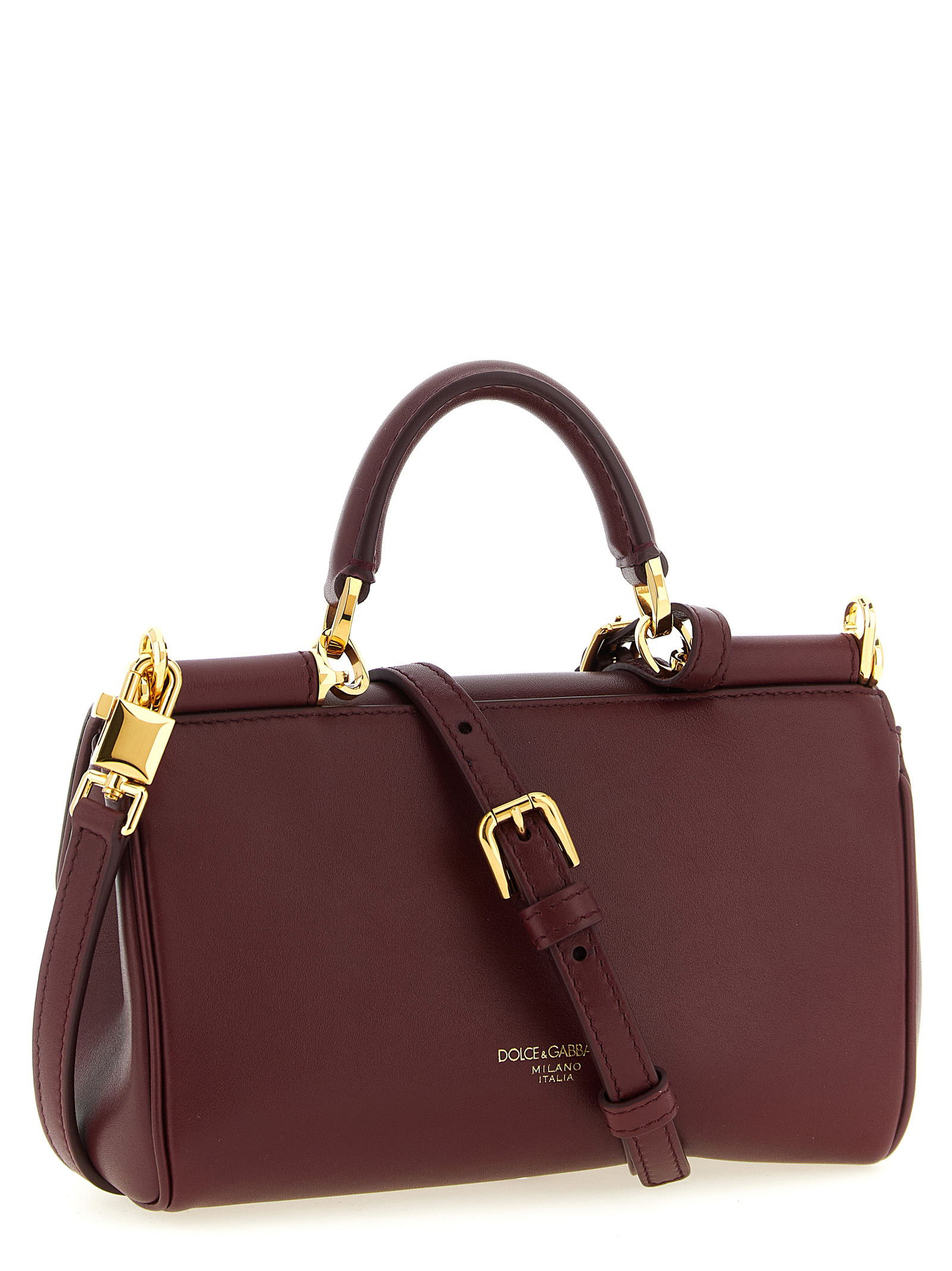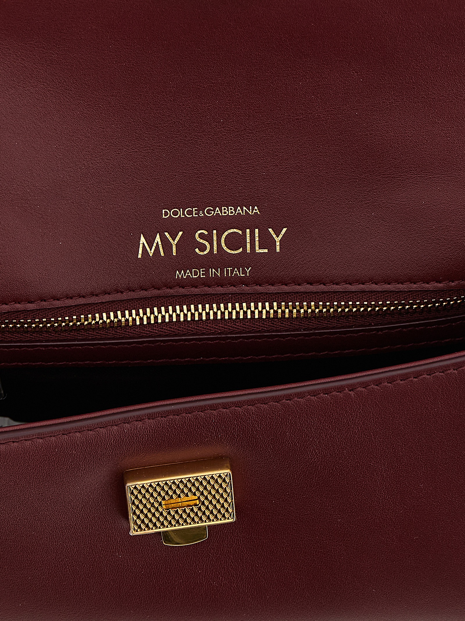 ‘My Sicily’ mini handbag in plongé calf leather, vintage brass galvanic metal details, flap closure with tuck-in mechanism and monogalvanic metal plate with front engraved logo, fixed handle, back embossed logo, adjustable and removable shoulder strap, removable name tag.