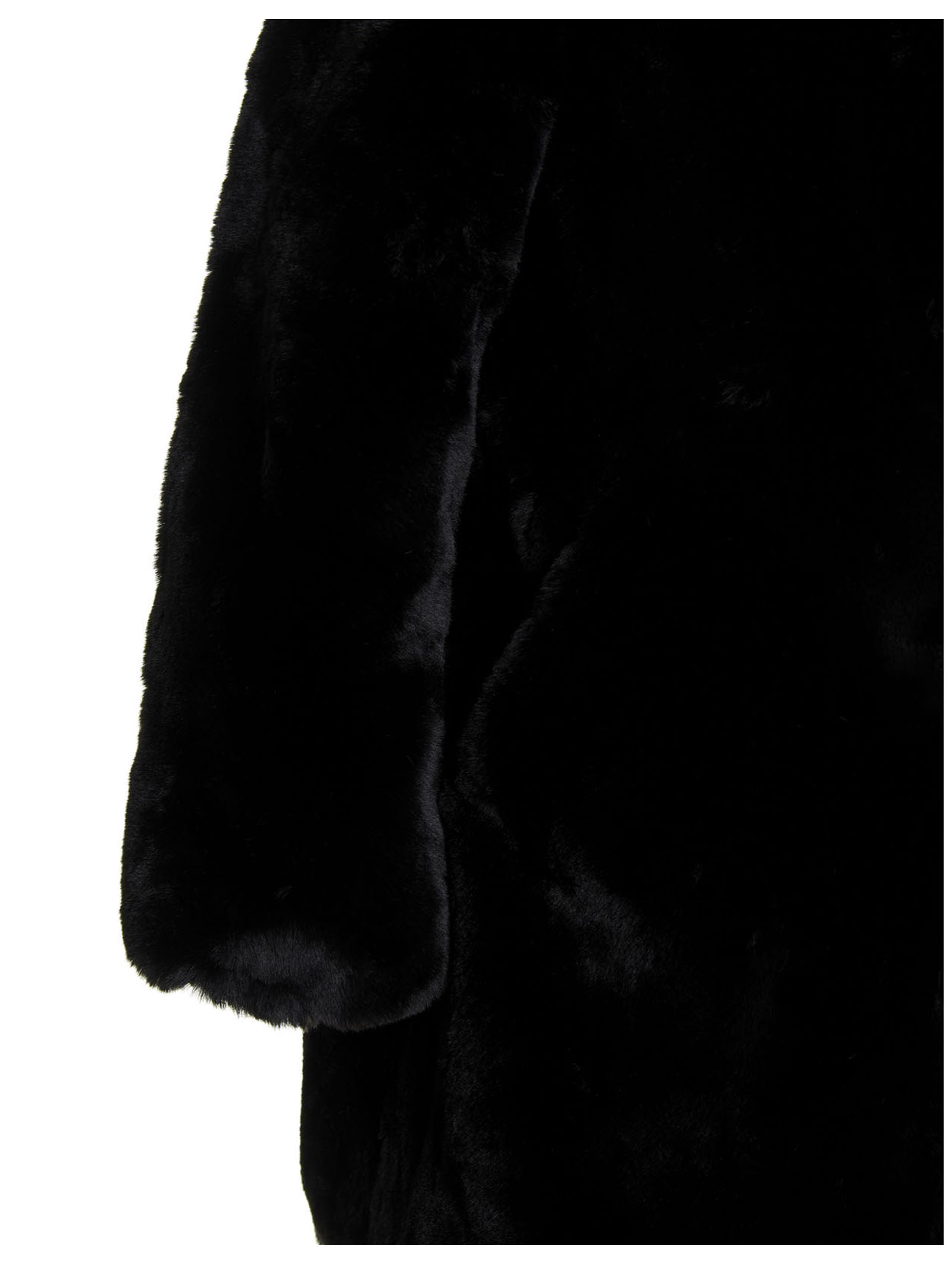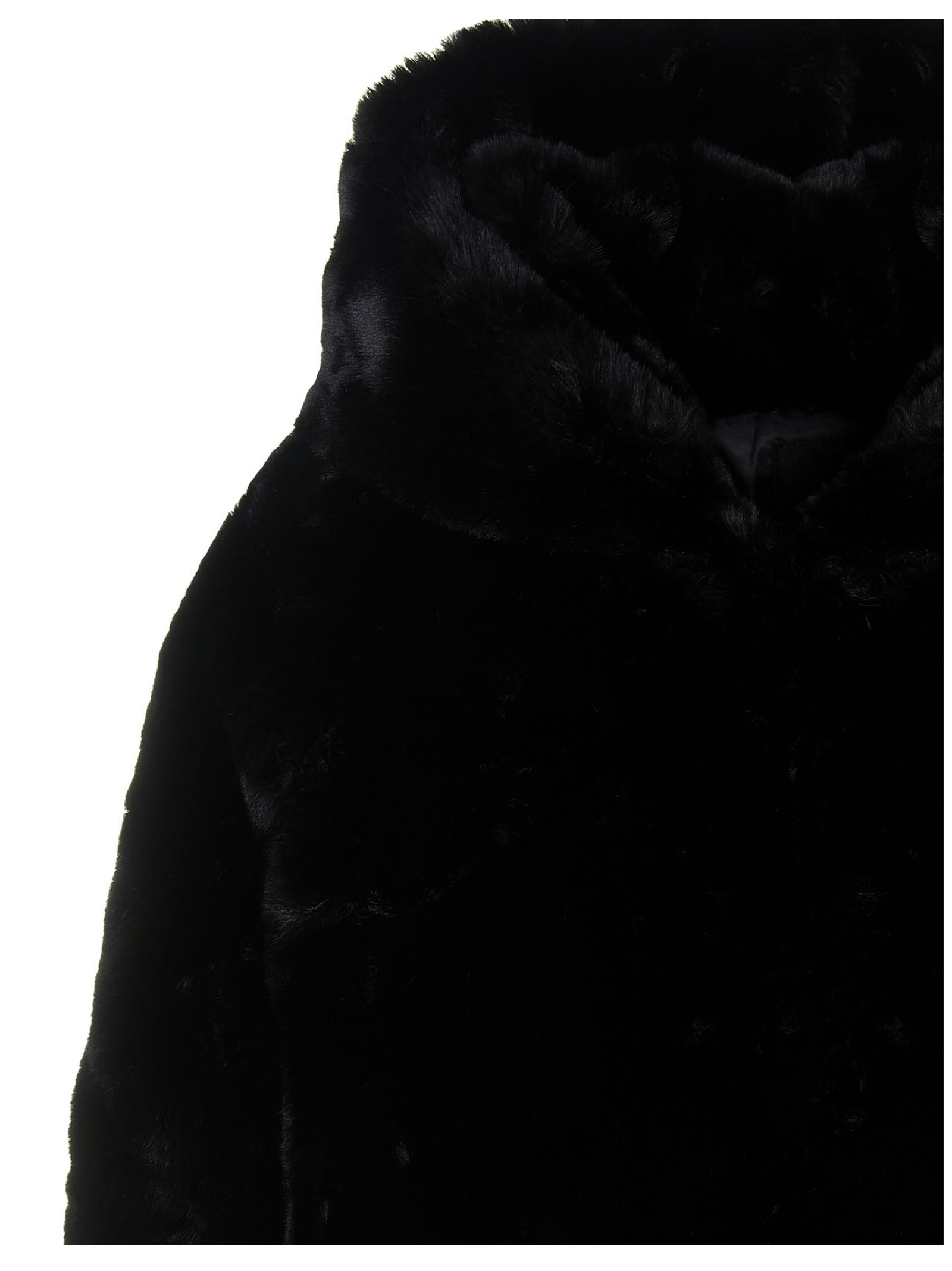‘Myra’ recycled polyester hooded eco fur coat with long sleeves and a hook-and-eye closure. JULIAN SUSTAINABLE: This product is made using recycled materials.