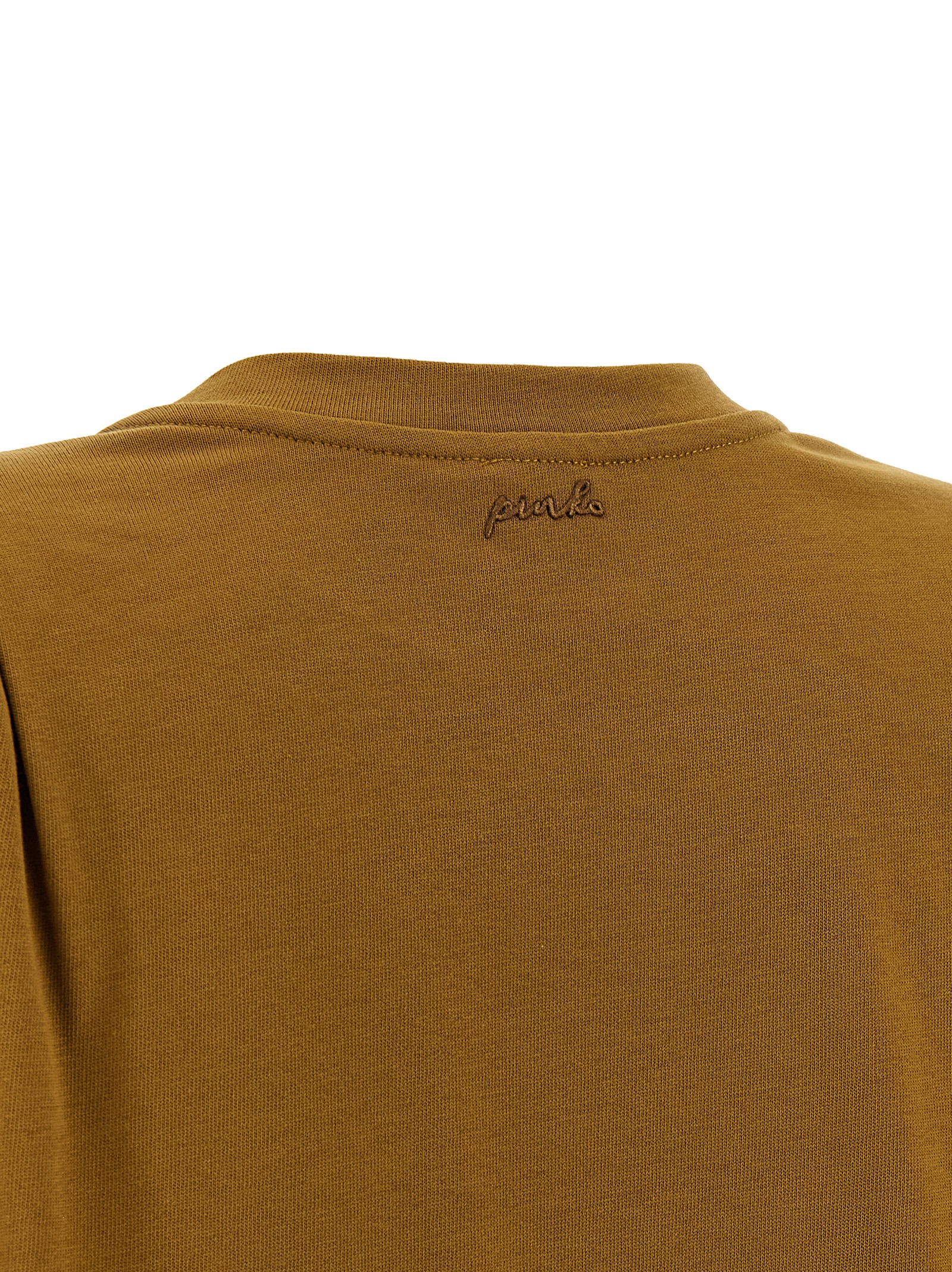 ‘Myranda’ cotton jersey sweater with slightly padded shoulder strap with front and back pleat, crew neck, tone-on-tone logo embroidery on the back, sleeveless.