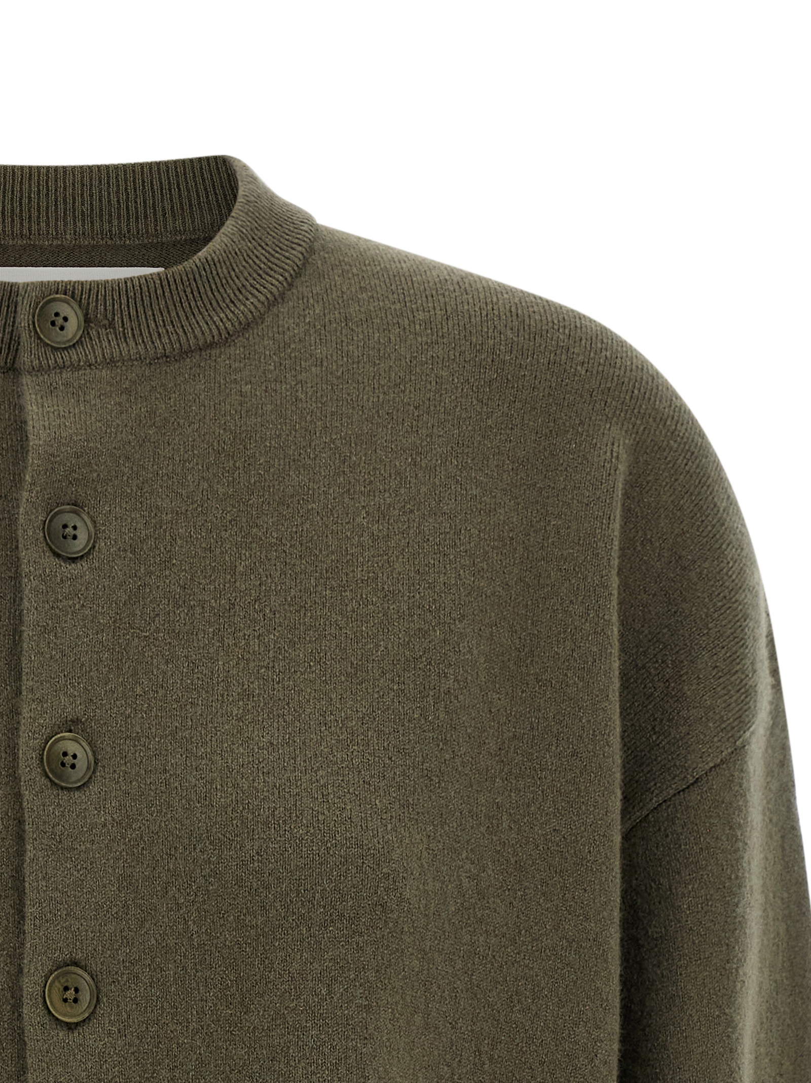‘n°170 chou’ wool cardigan with crew neck, front button closure, long cuffed sleeves.