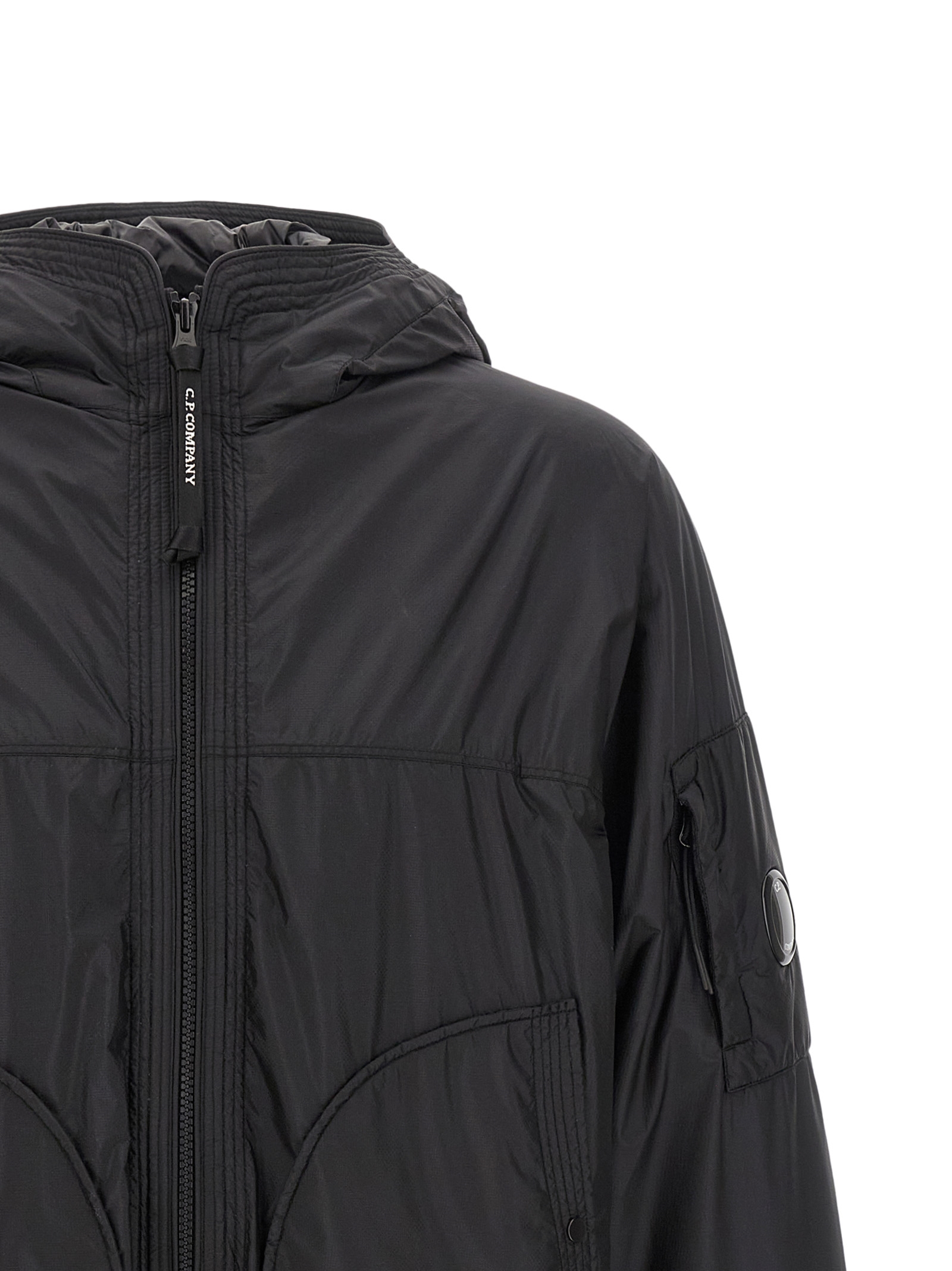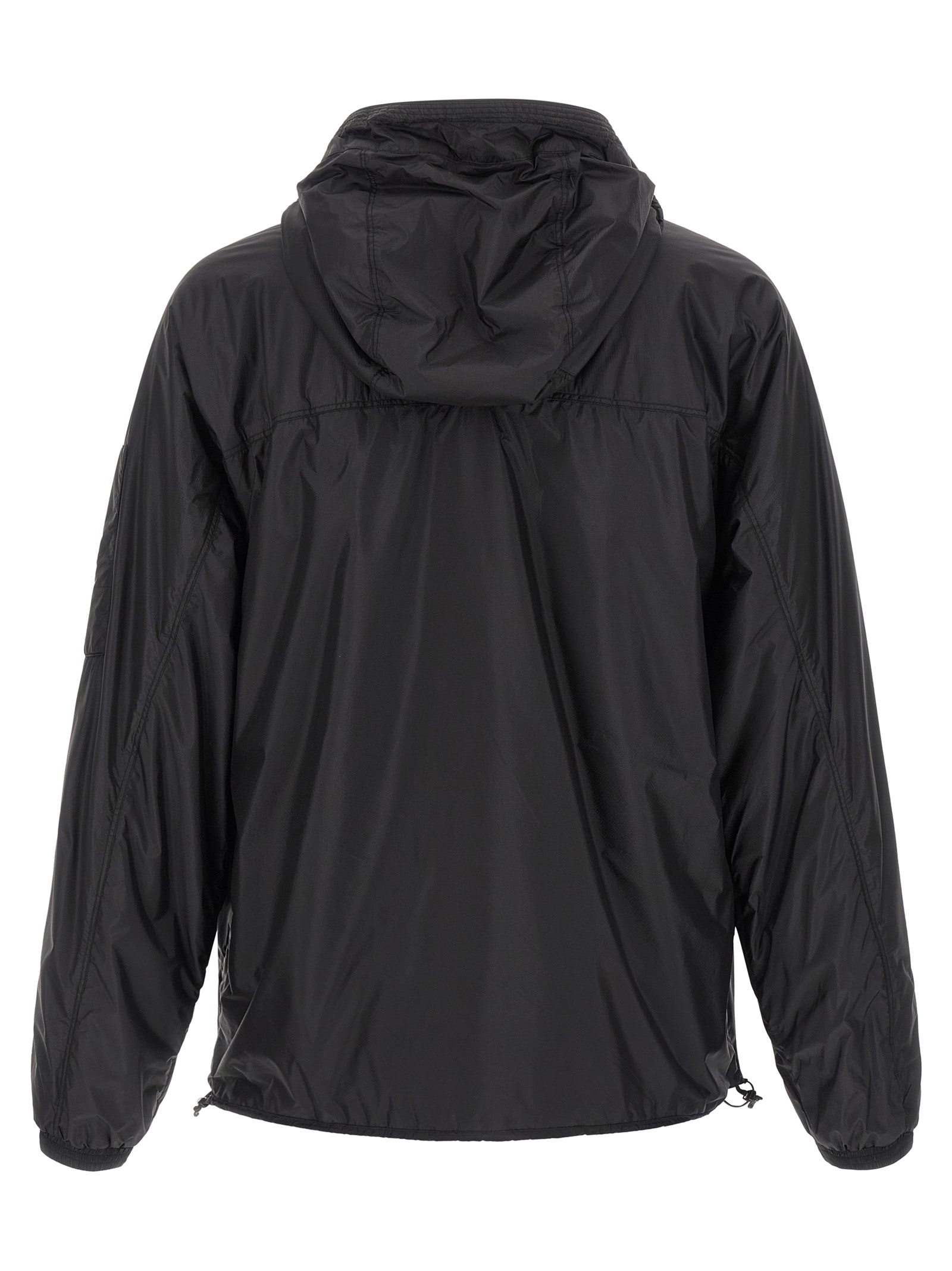 ‘Nada Shield’ slightly padded water-repellent Primaloft® jacket, adjustable hood, front zip closure, pockets, long sleeves with stretch knit cuffs and lens, drawstring at the hem.