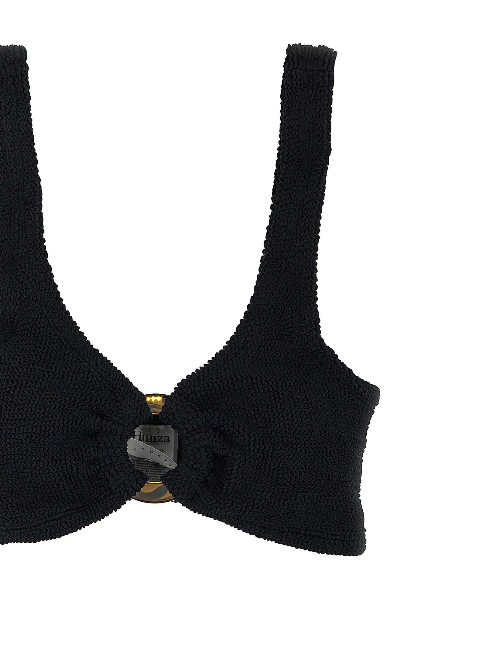 Nadine’ seamless crinkle fabric bikini with bra with resin hook detail and regular briefs.