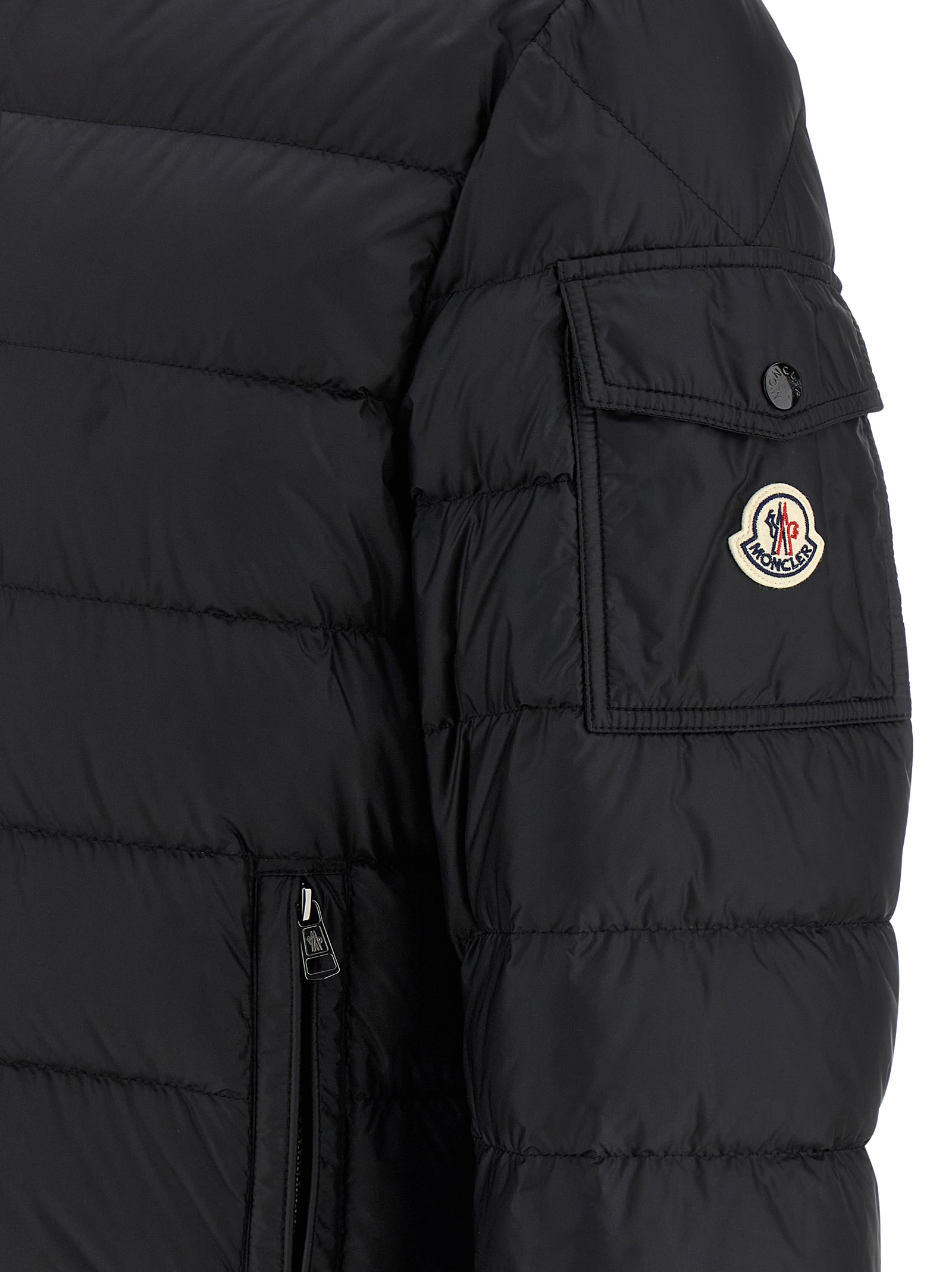 ‘Najan’ quilted long saison ue down jacket slightly padded with goose down padding, hood, front zip closure, pockets, long cuffed sleeves, felt logo patch, elastic hem.
