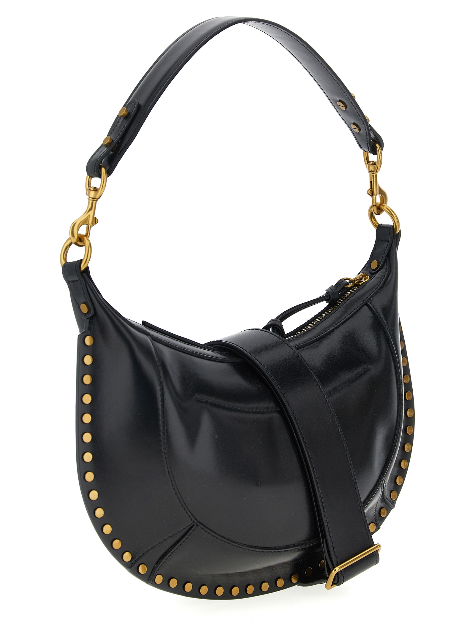 ‘Naoko’ smooth leather shoulder bag with stud appliqué, front embossed logo, top zip closure, removable handle, adjustable and removable shoulder strap.