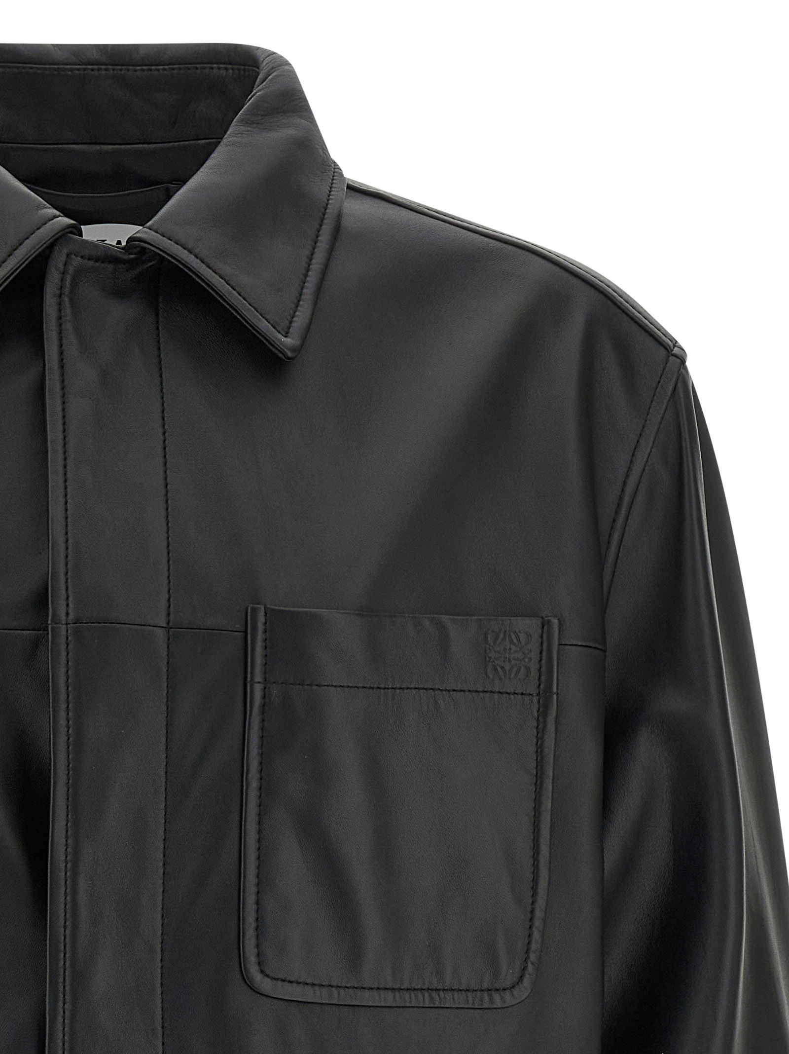 Nappa overshirt, pocket with embossed ‘Anagram’ logo, front hidden snap button closure, long cuffed sleeves, rounded hem, lining.