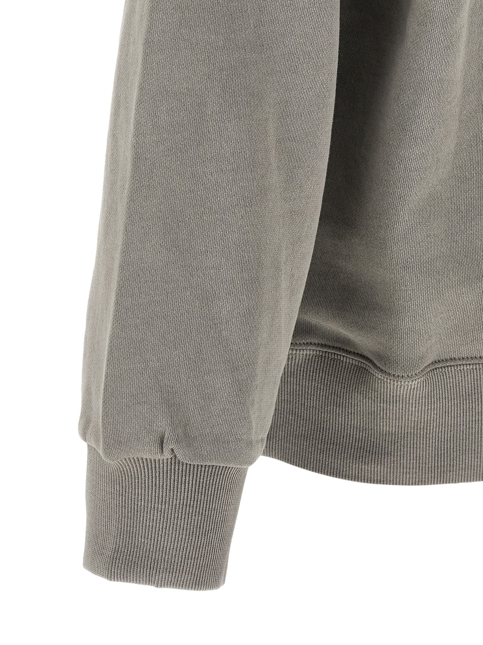 ‘Nelson’ sweatshirt in heavy unbrushed cotton jersey dyed a délavé effect garment, front logo patch, crew neck, long sleeves with cuffs and dropped shoulders, and band on the hem.