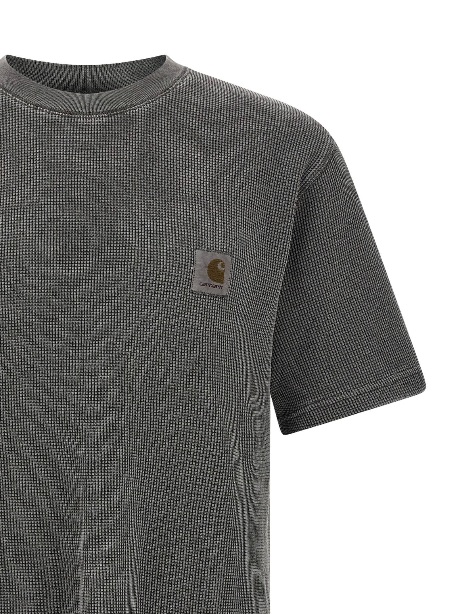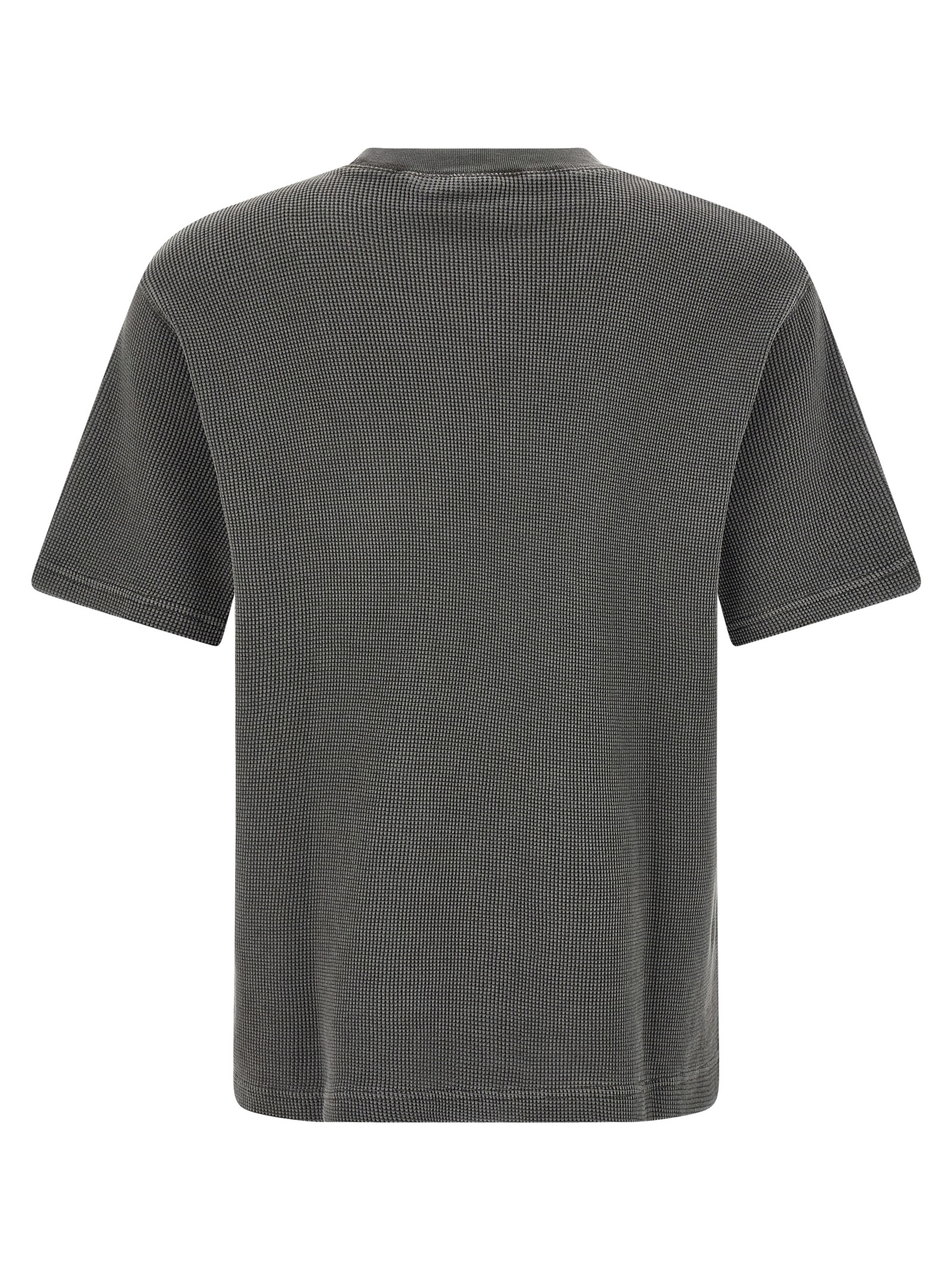 ‘Nelson Waffle’ heavy honeycomb cotton t-shirt dyed on the head, front logo patch, crew neck, short sleeves with dropped shoulders.
