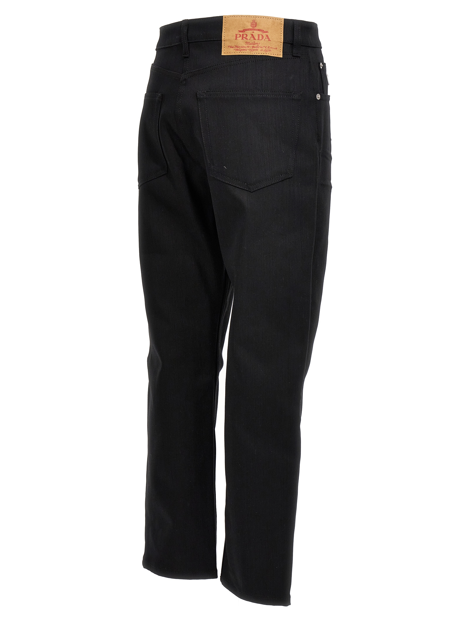 New denim’ medium waist denim jeans with straight leg and a logo tag. Button fastening.