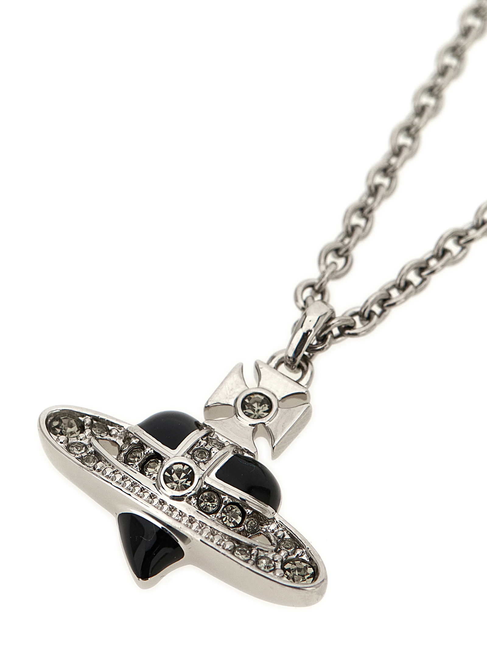 ‘New Diamante Heart’ silver necklace with adjustable chain, Orb pendant with crystals and enamelled heart