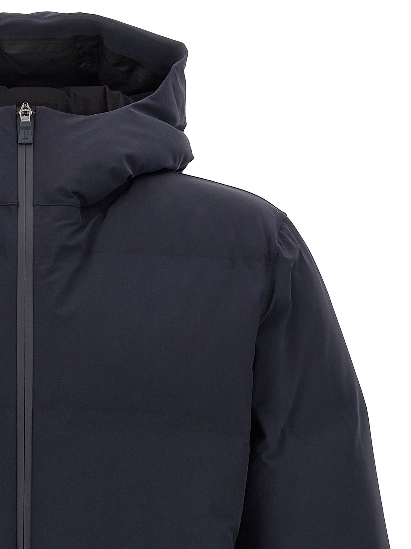 ‘New Impact’ down jacket in slightly quilted water-repellent technical fabric with goose down padding, hood, front zip closure, pockets, long sleeves with elastic cuffs, drawstring on the hem.
