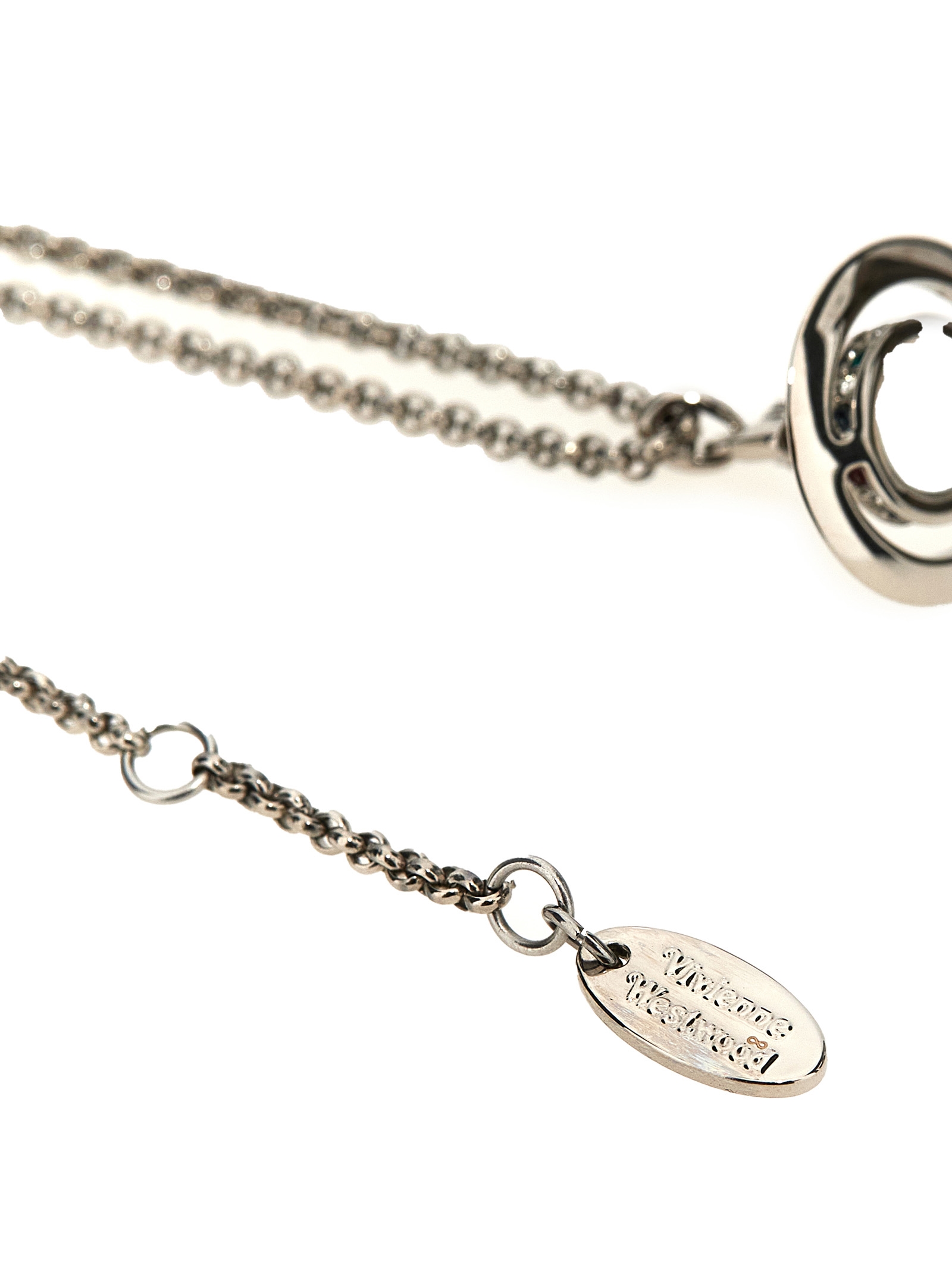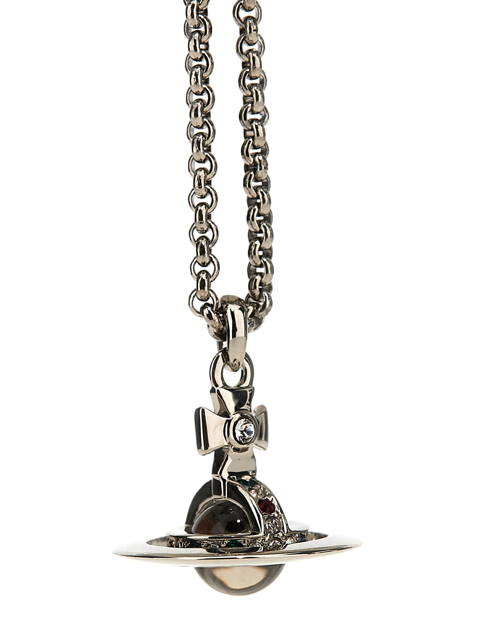‘New Petite Orb Pendant’ necklace in silver metal with logo pendant and crystals.