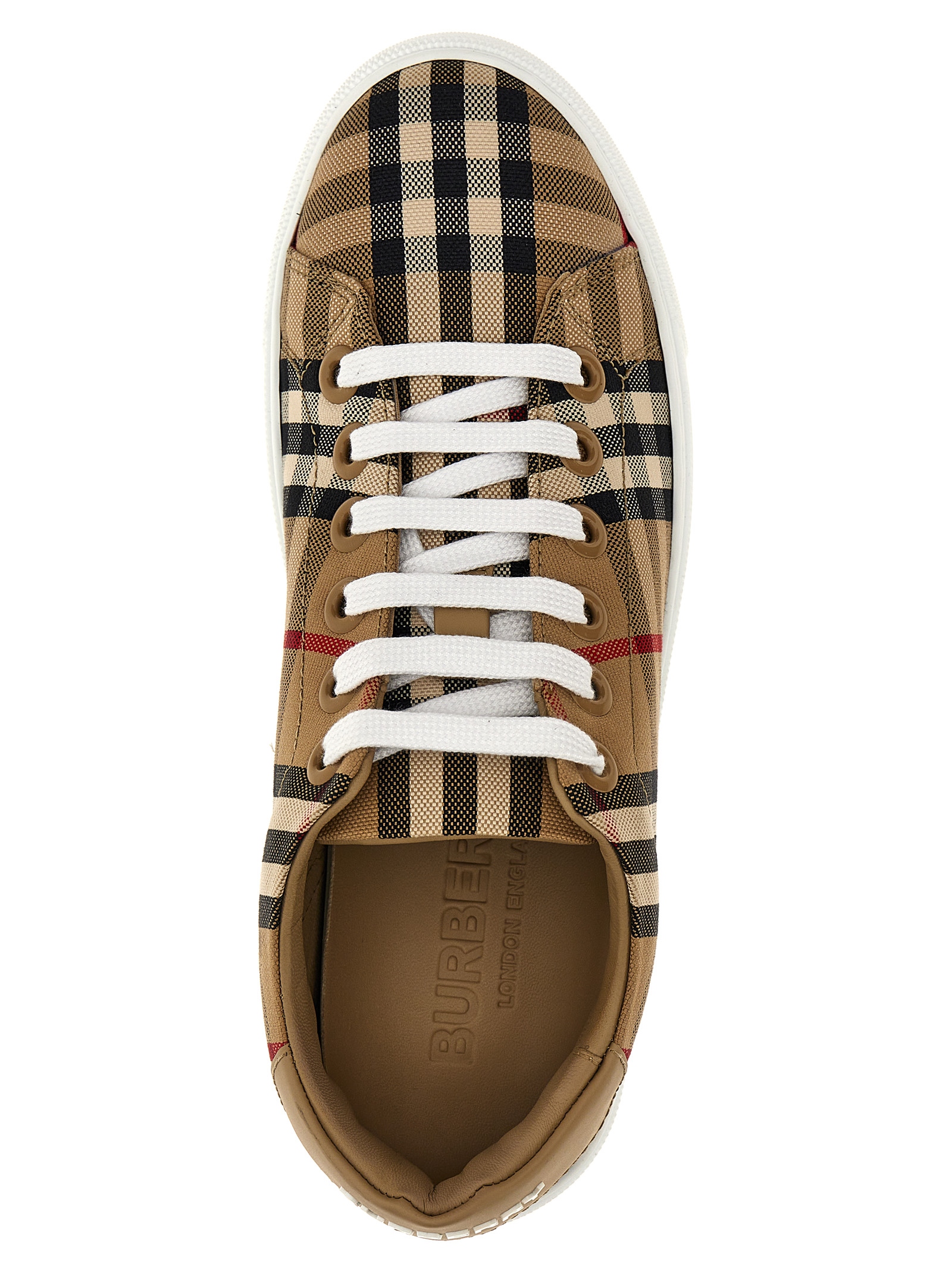‘Newalbridge’ low top, lace up sneakers with an all over check vintage pattern and a rubber sole.