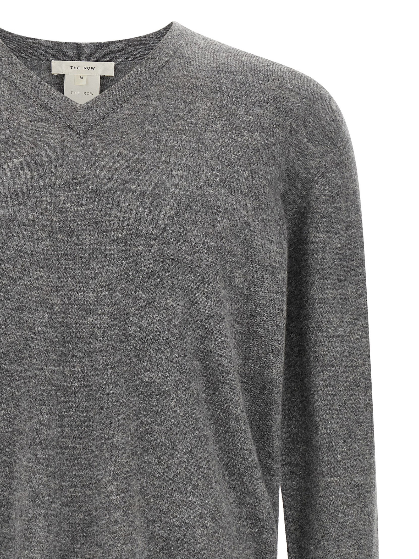 ‘Nian’ sweater in fine Scottish cashmere subjected to special washing to obtain a fresh and breathable finish, seamless design, V-neck, long sleeves with cuffs and dropped shoulder, band on the hem.