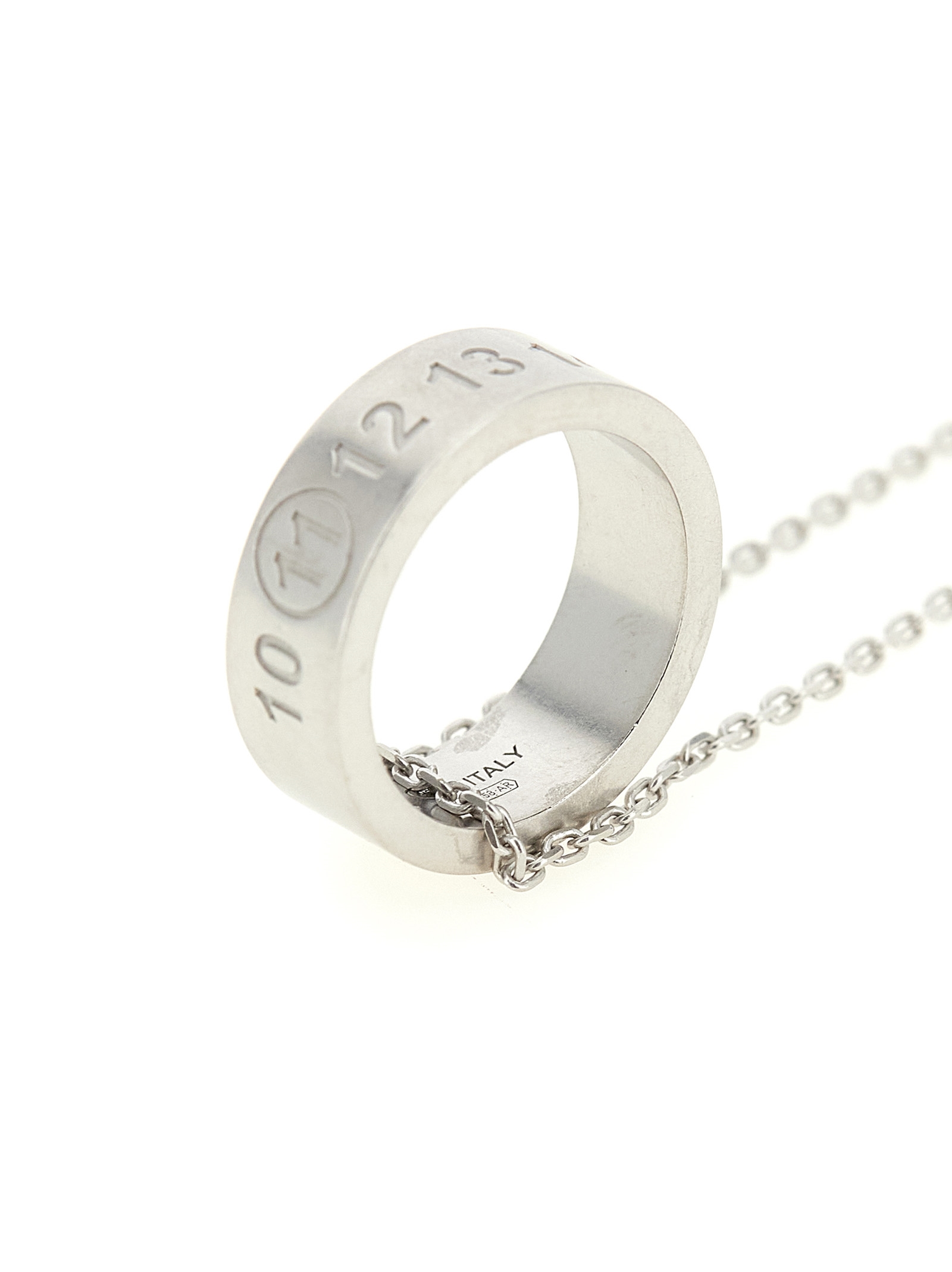 Silver necklace, ring with engraved ‘Number Reference’.