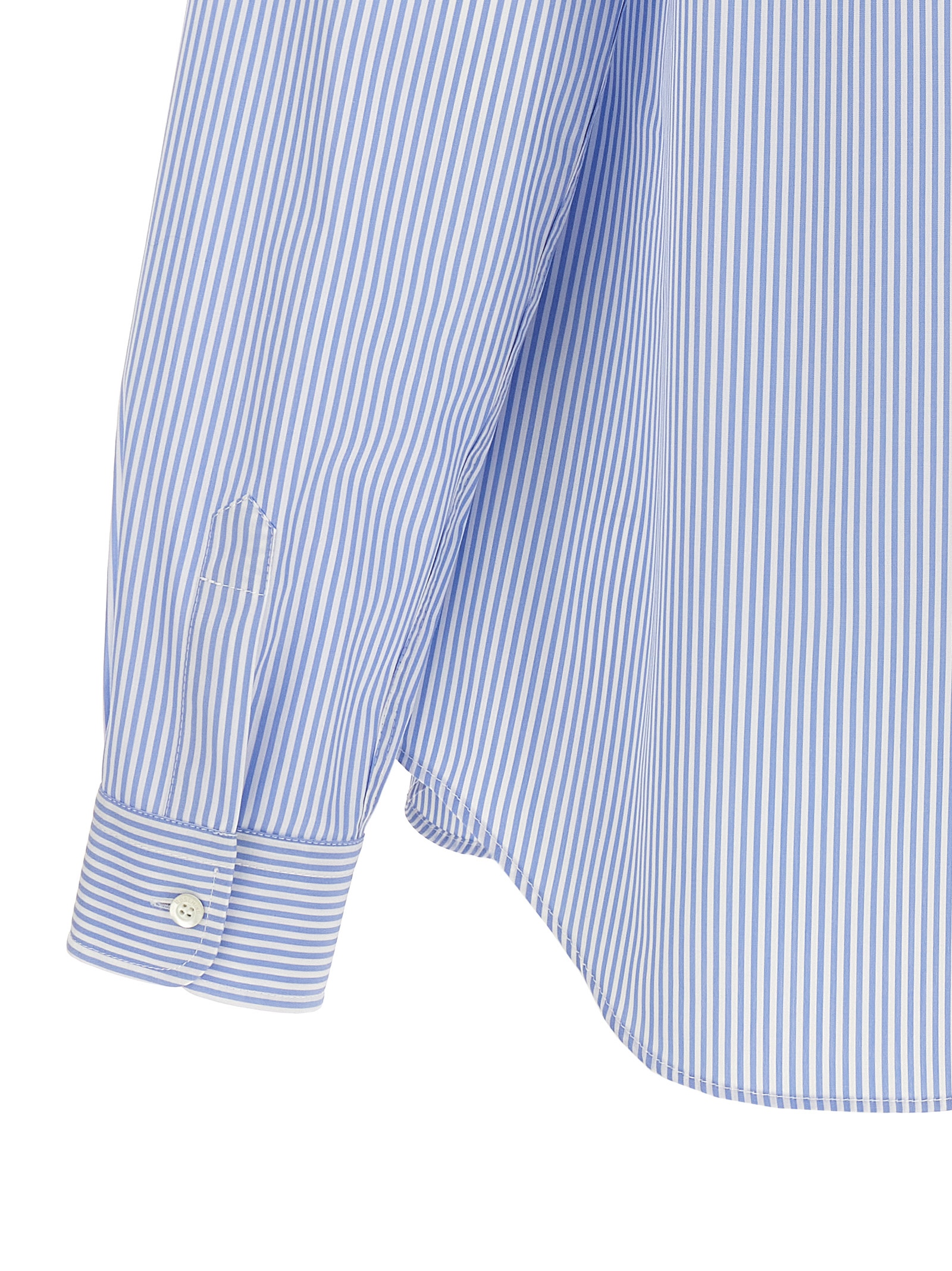 Striped cotton poplin shirt, front ‘Oca’ embroidery, button closure, back logo embroidery, long cuffed sleeves.