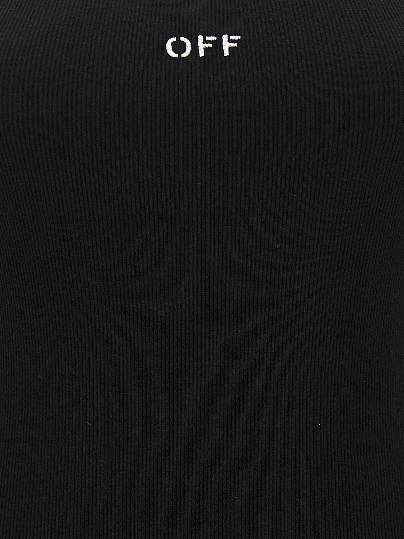 ‘Off stamp’ ribbed stretch cotton dress with contrast logo.