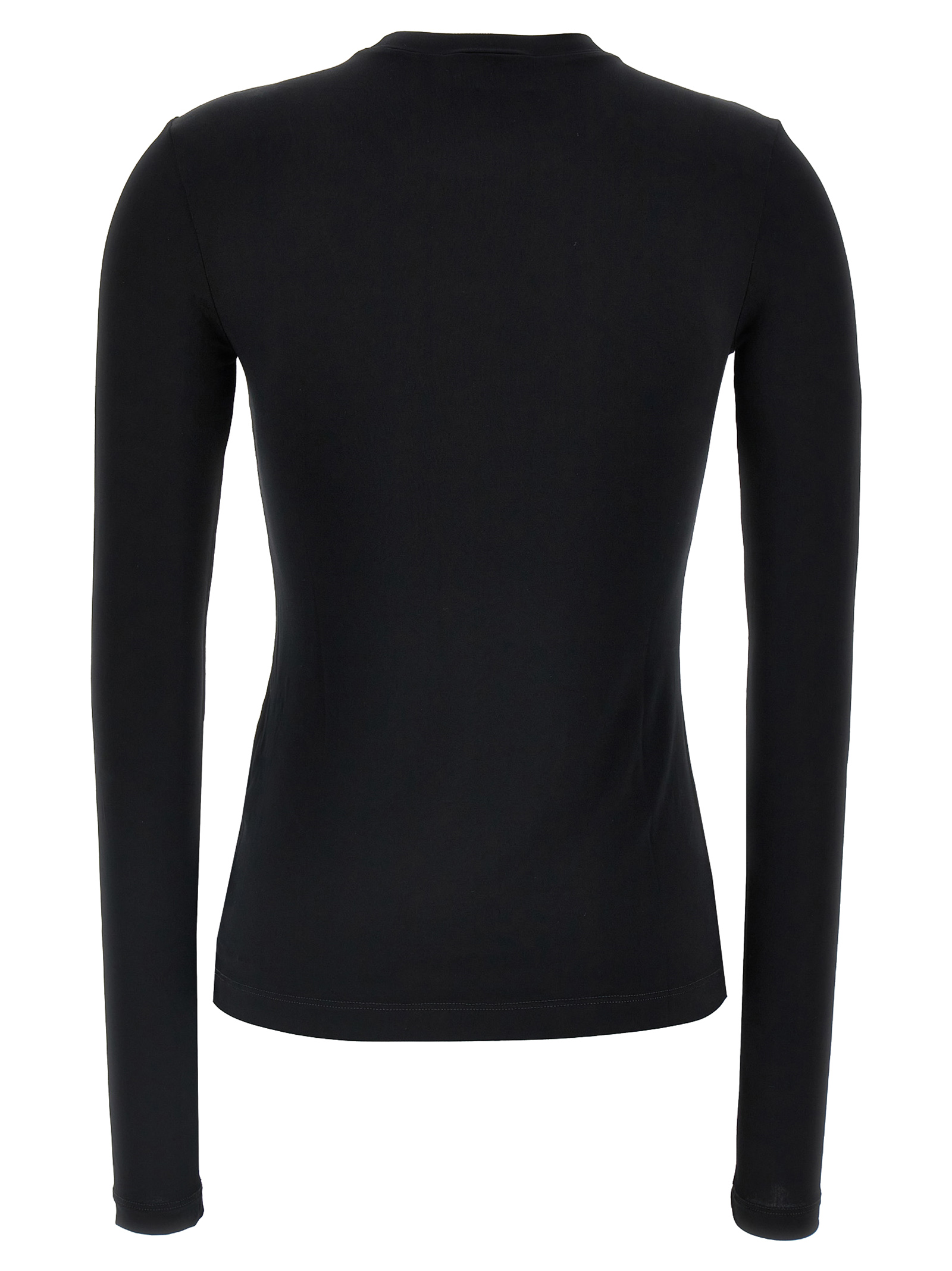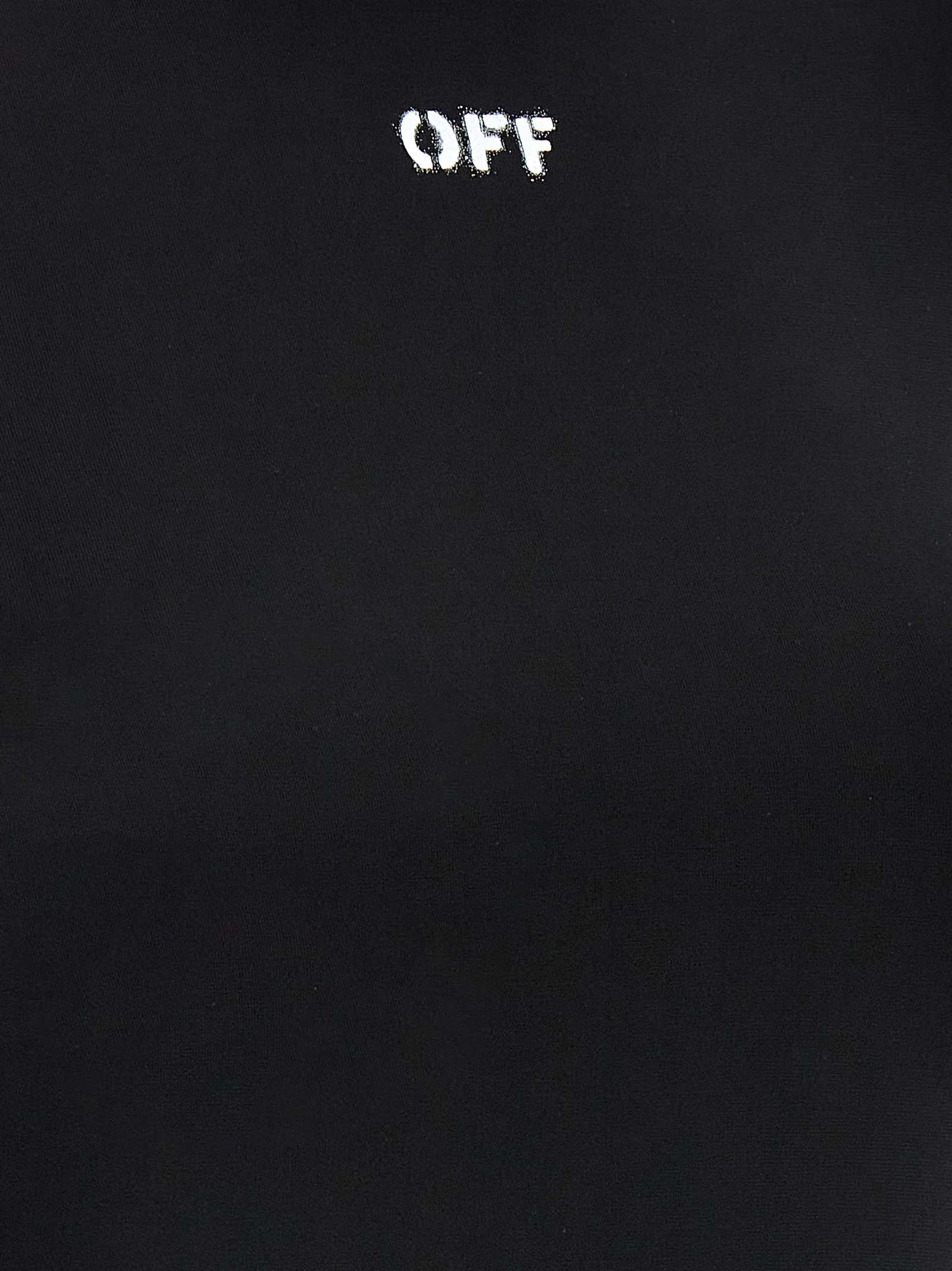 ‘Off stamp’ stretch viscose top with crewneck and long sleeves and a contrast logo print.