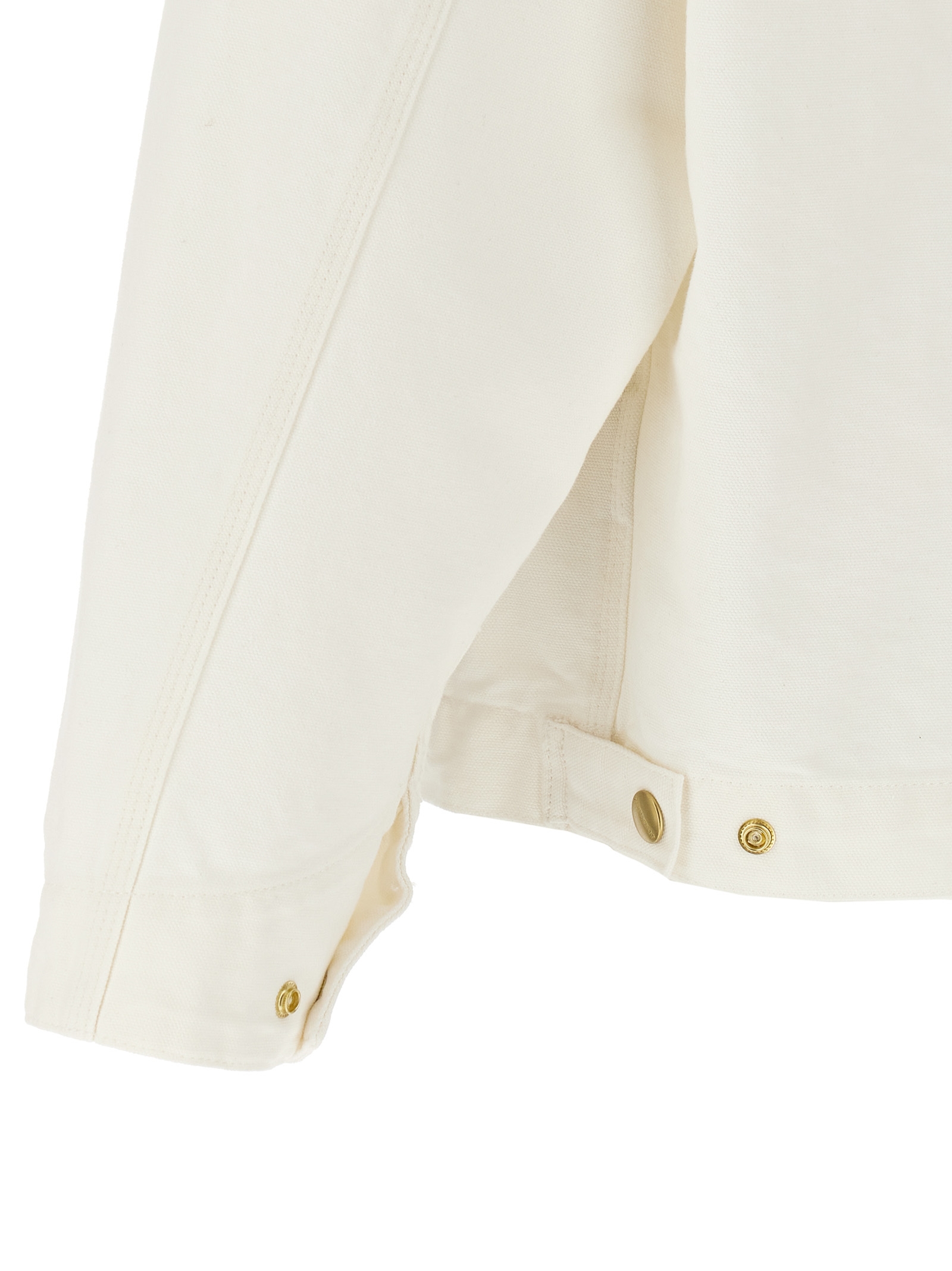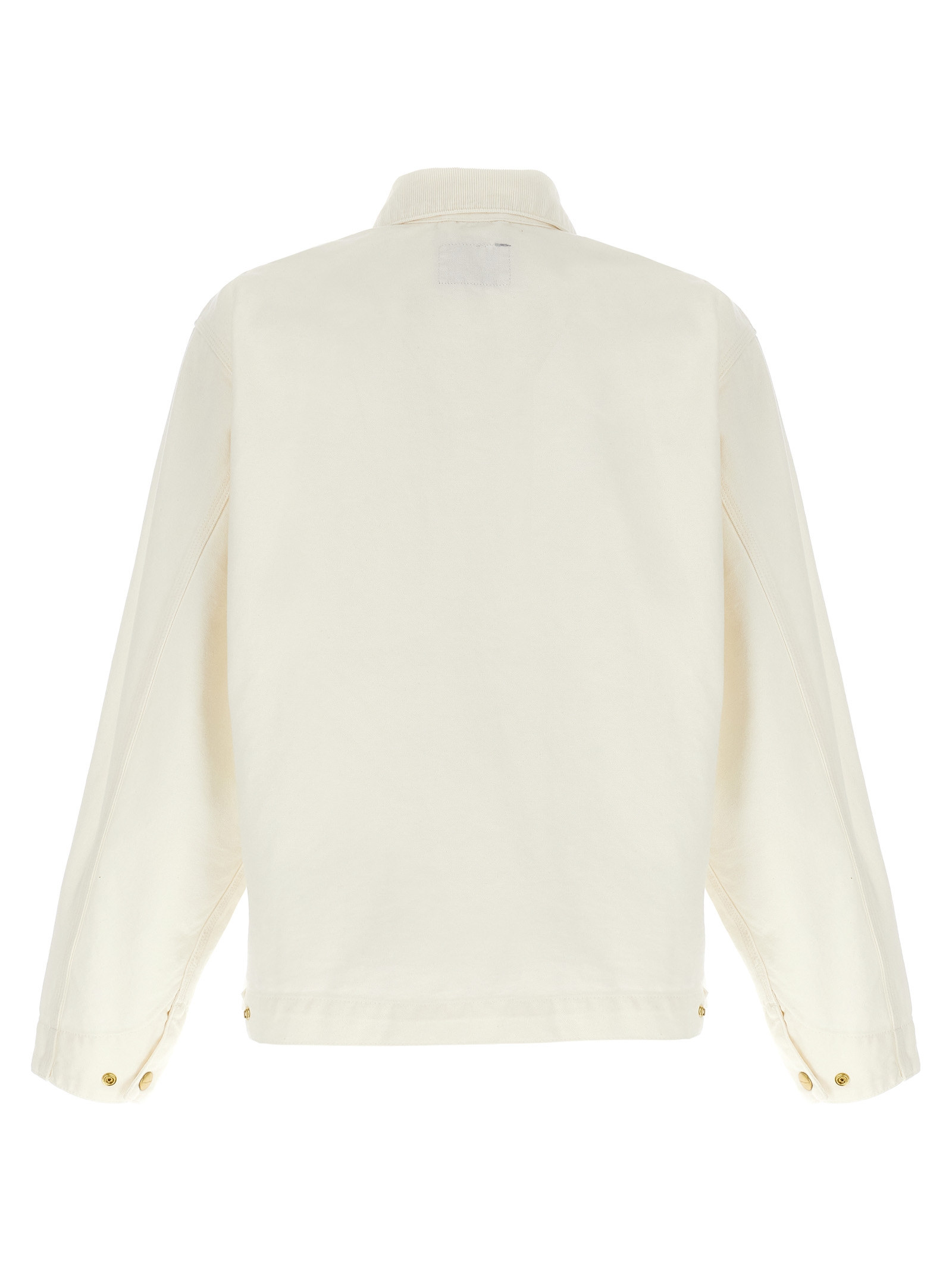 ‘OG Detroit’ jacket in heavy Dearborn canvas with tonal corduroy collar, front logo patch, zip closure, pockets, long sleeves.